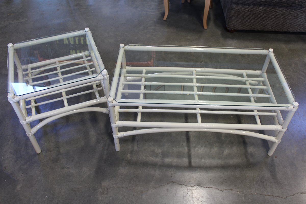 WHITE BAMBOO GLASSTOP 2-PIECE COFFEE TABLE SET