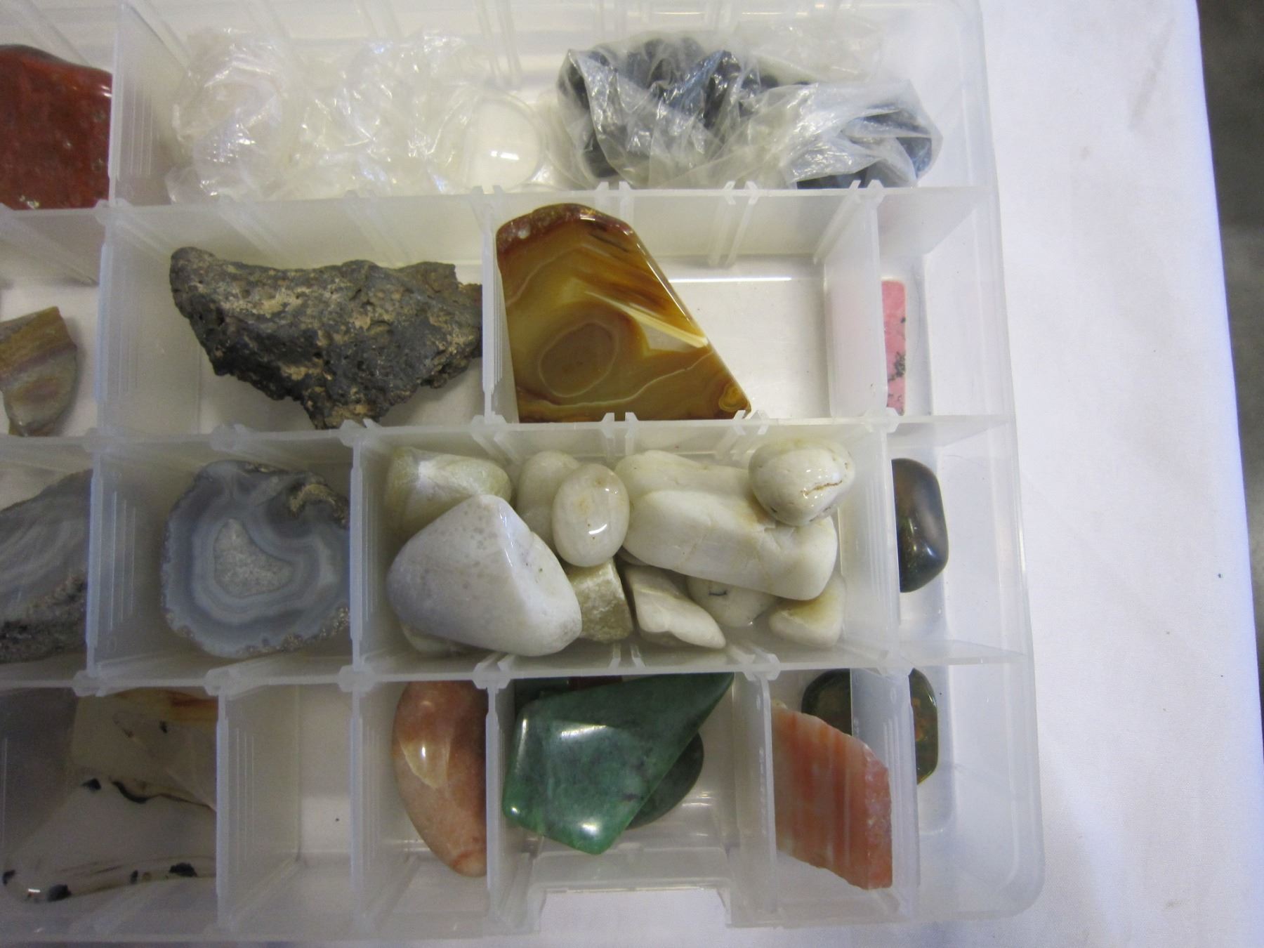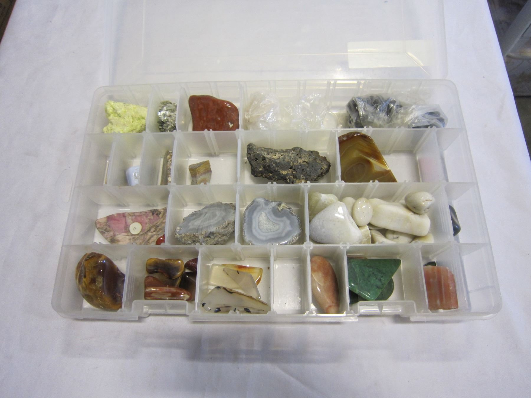 WHITE BIN W/ SEMI-PRECIOUS STONE/ROCK COLLECTION JADE ETC