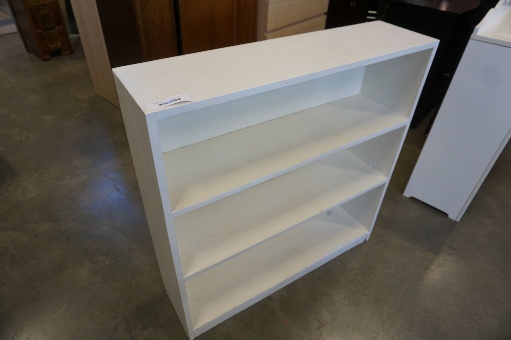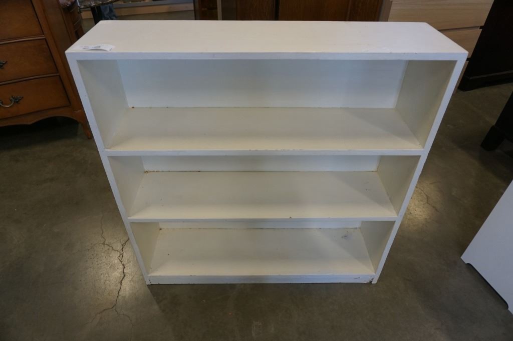 WHITE BOOKSHELF 3 FOOT WIDE X 10 INCHES DEEP X 3 FOOT TALL