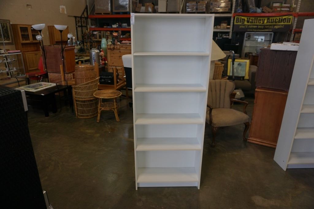 WHITE BOOKSHELF - APPROX 69 INCHES TALL