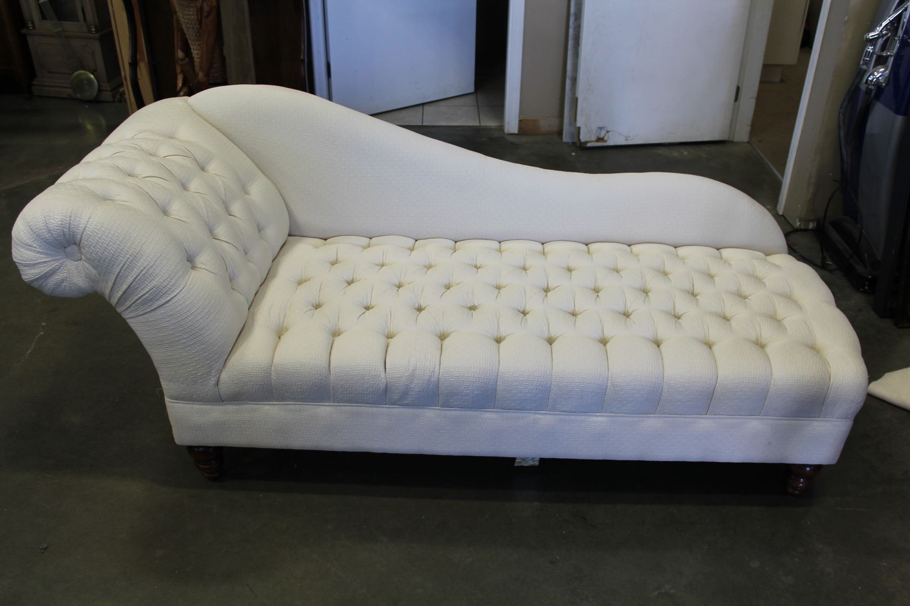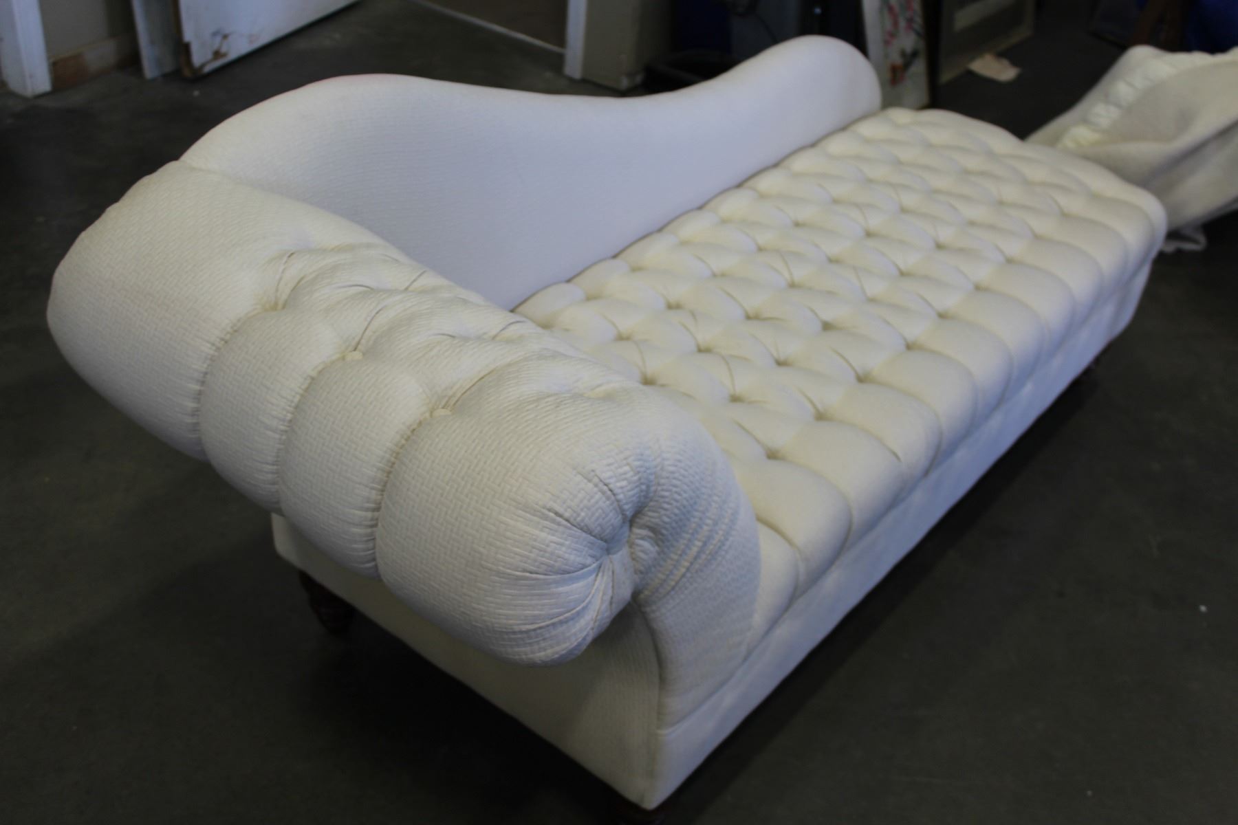 WHITE BUTTON TUFTED LOUNGE CHAIR