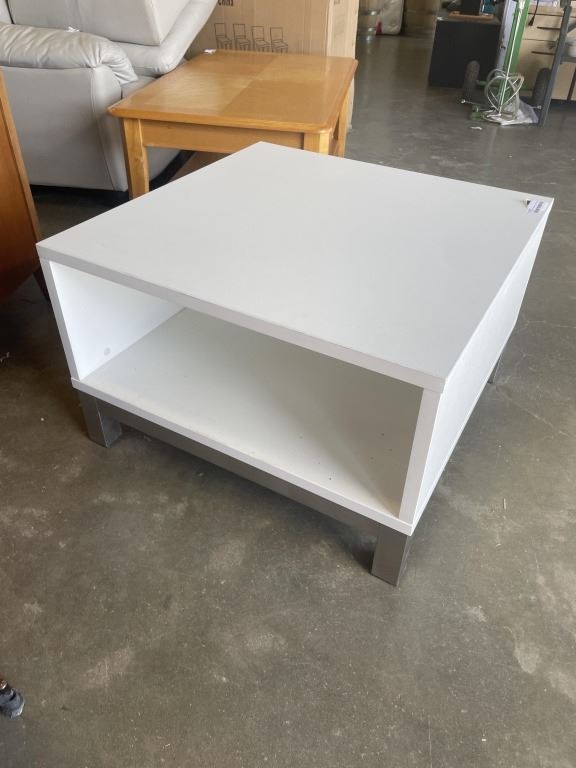 WHITE COFFEE TABLE W/ OPEN SHELF