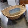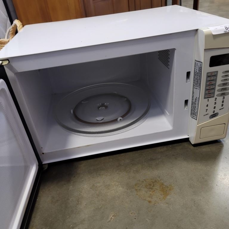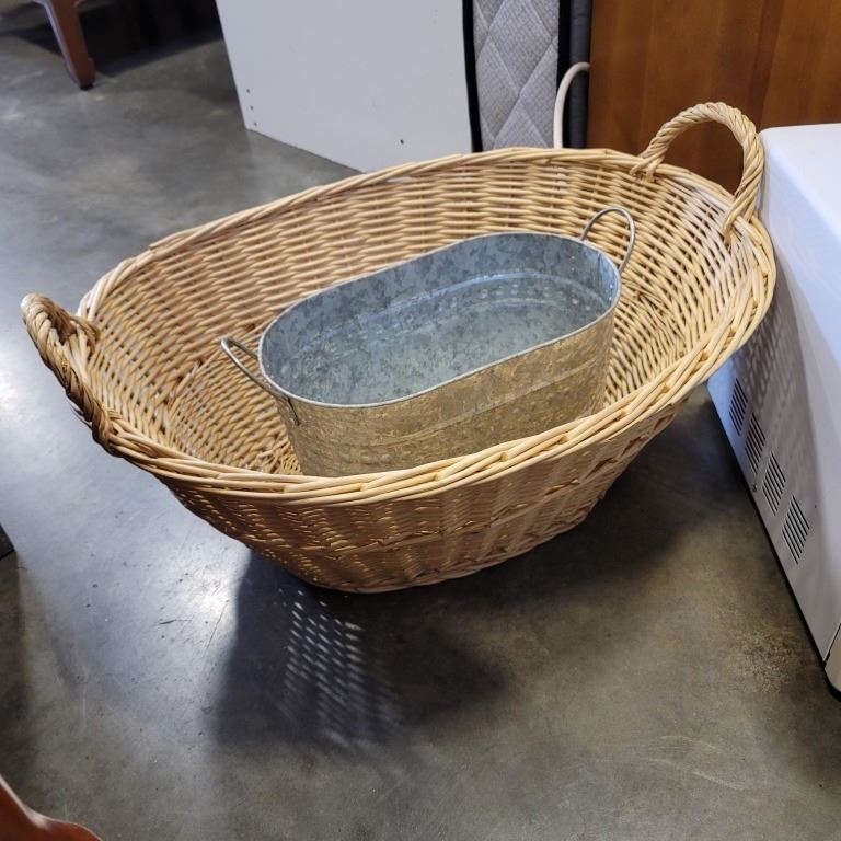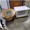 WHITE DANBY MICROWAVE, WICKER BASKET AND GALVANIZED TUB