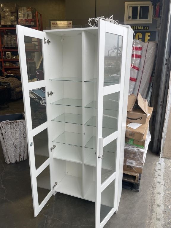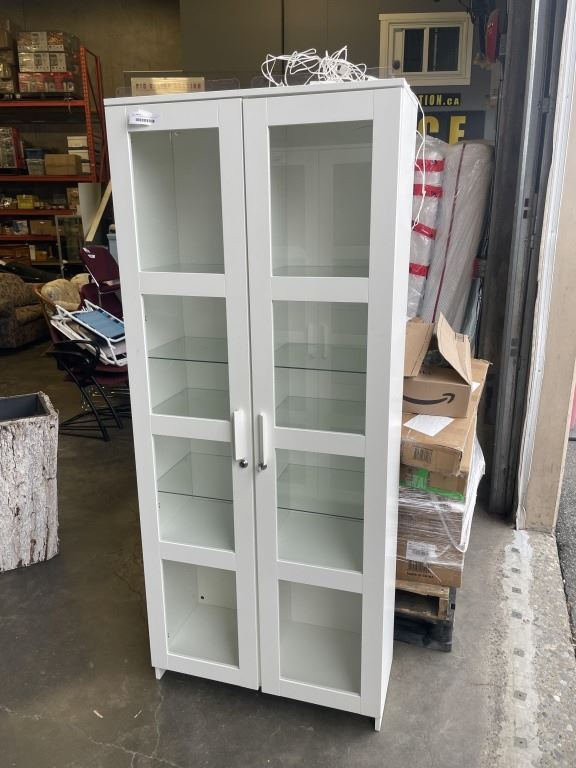 WHITE IKEA GLASS DOOR CABINET W/ KEY