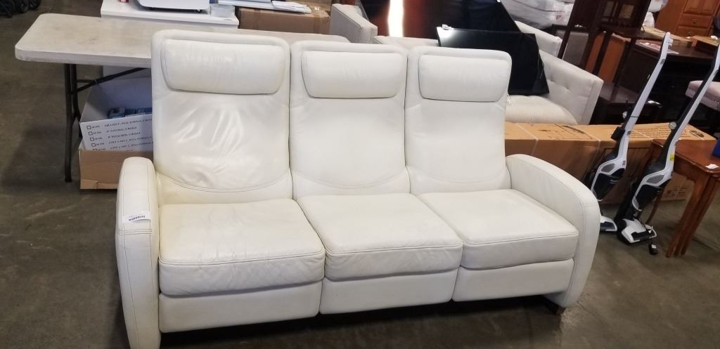 WHITE LEATHER CELLINI 3 SEAT SOFA