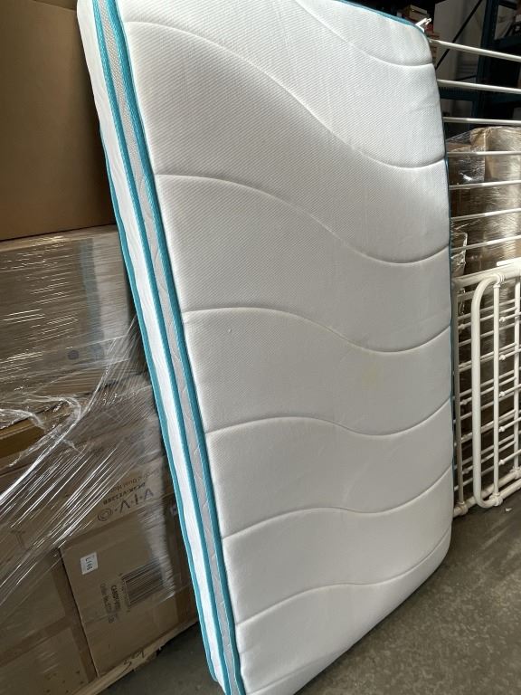 WHITE METAL SINGLE SIZE BEDFRAME WITH MATTRESS