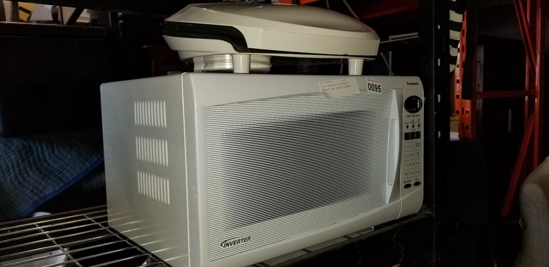 WHITE PANASONIC MICROWAVE INVERTER AND GEORGE FOREMAN GRILL