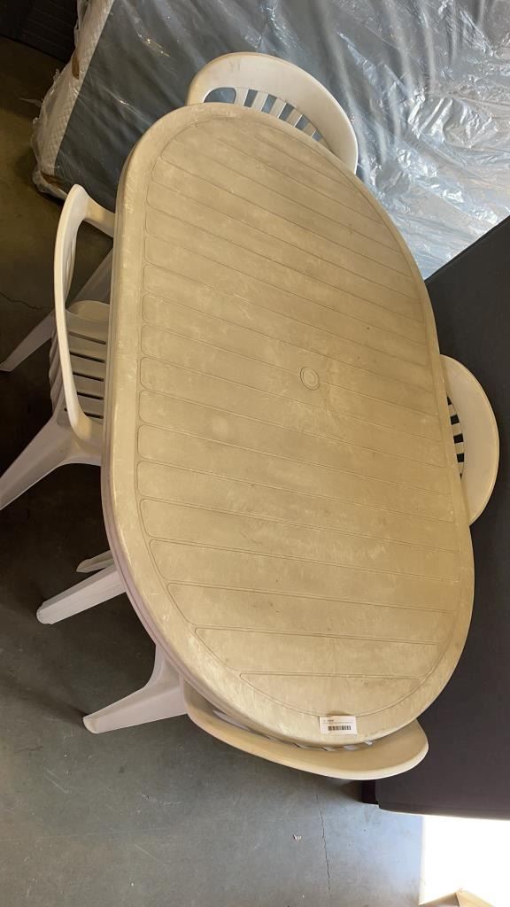 WHITE PATIO TABLE WITH 6 CHAIRS