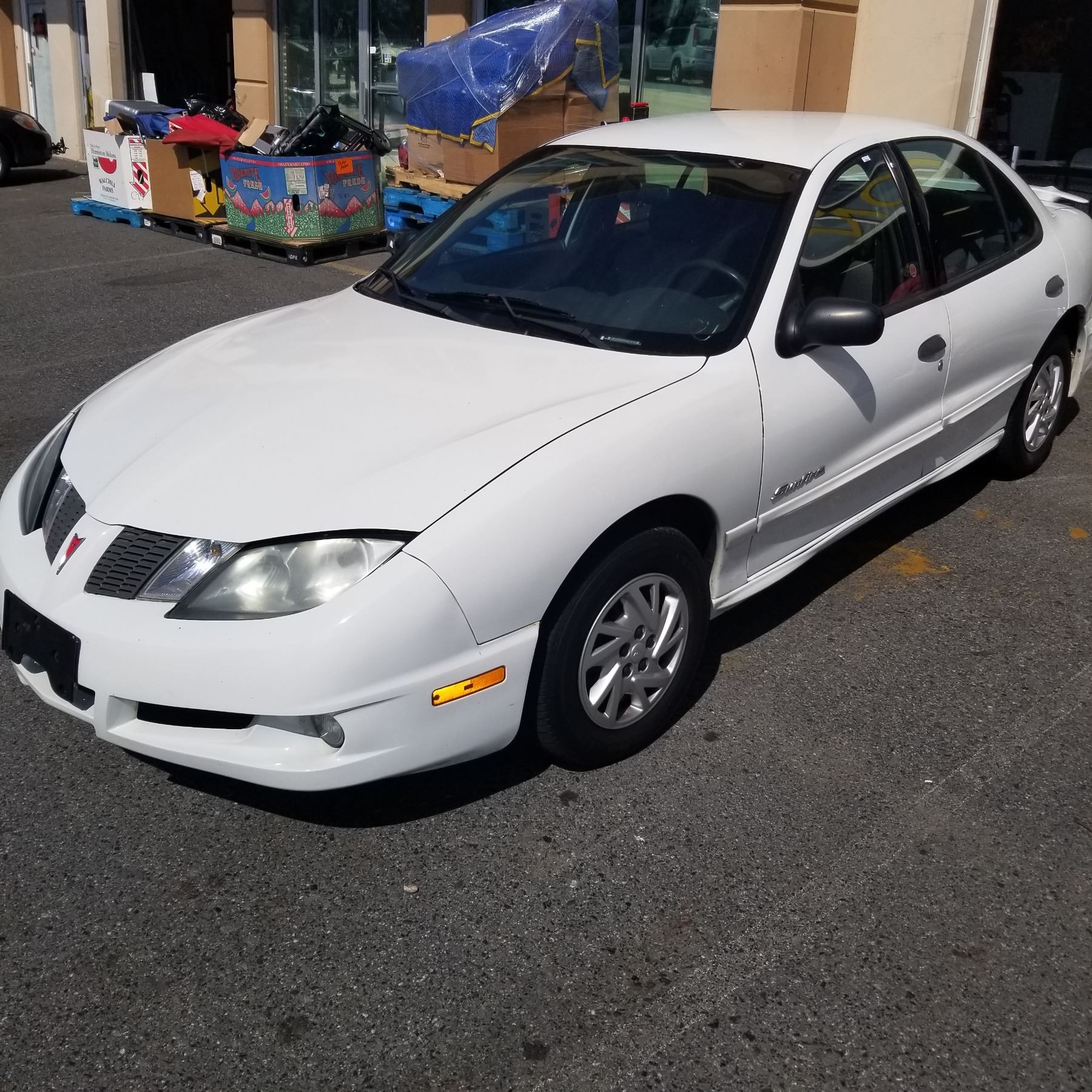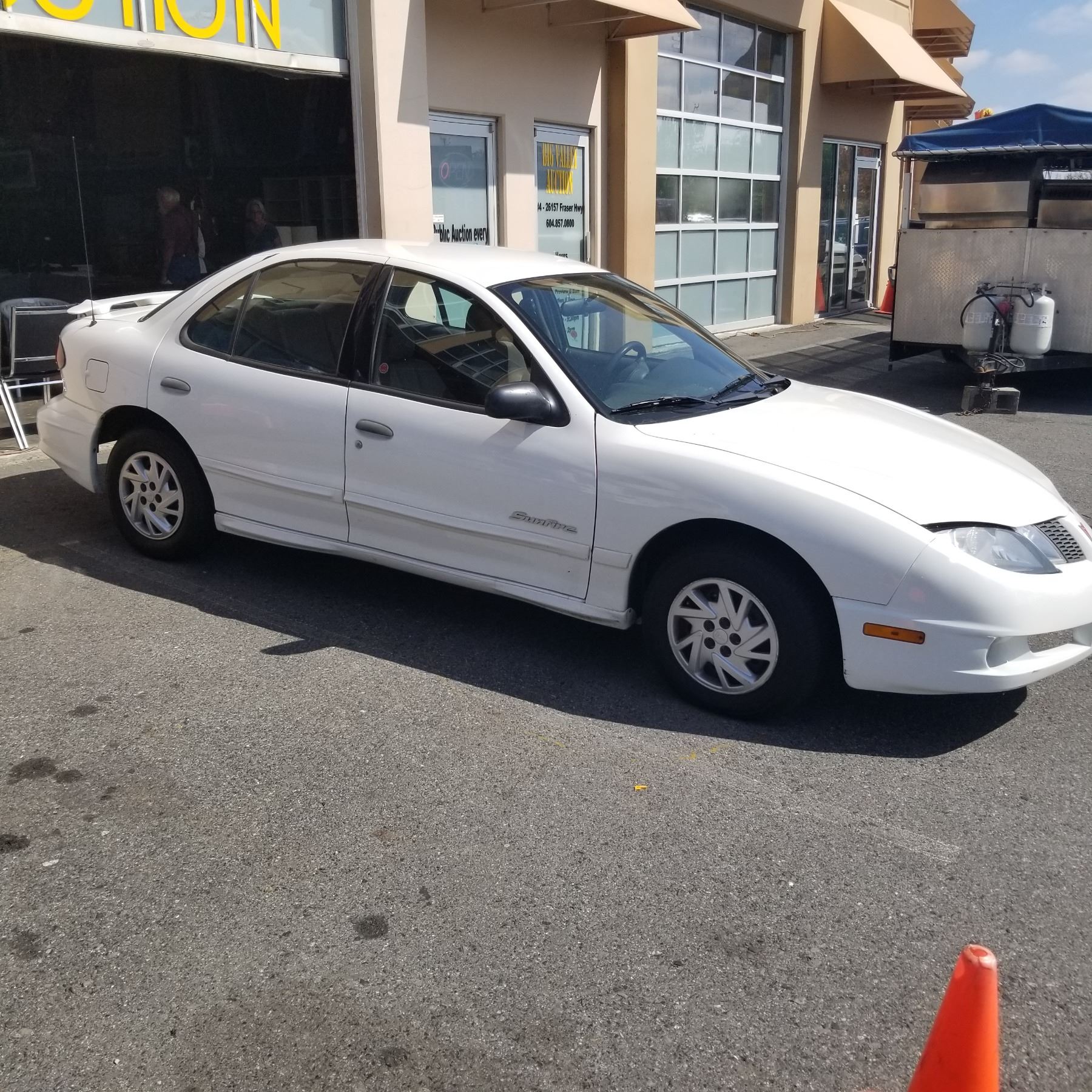 WHITE PONTIAC SUNFIRE 4 DOOR SEDAN W/ KEY AND FOB, CAR FAX, AND REGISTRATION 160 020KM