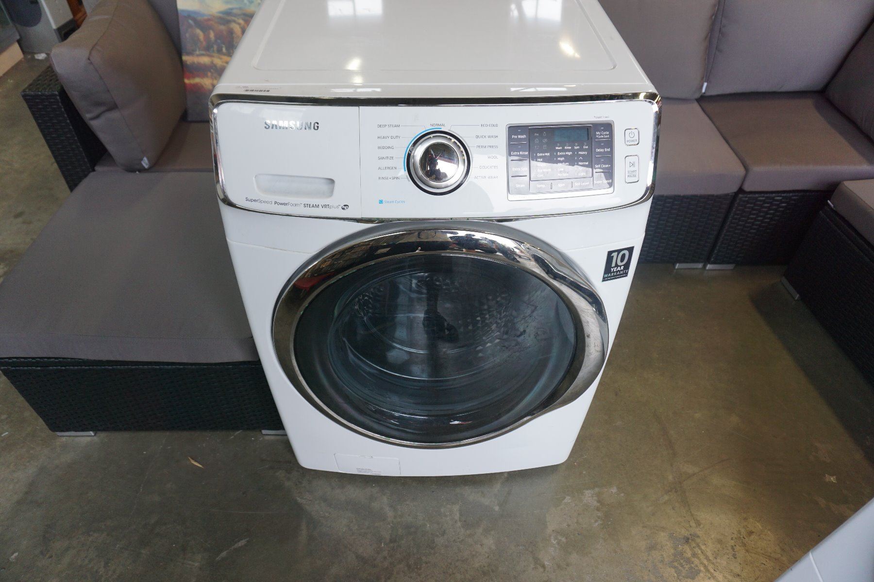 WHITE SAMSUNG FRONT LOAD WASHER, SUPER SPEED, POWER FOAM STEAM VRTPLUS HE