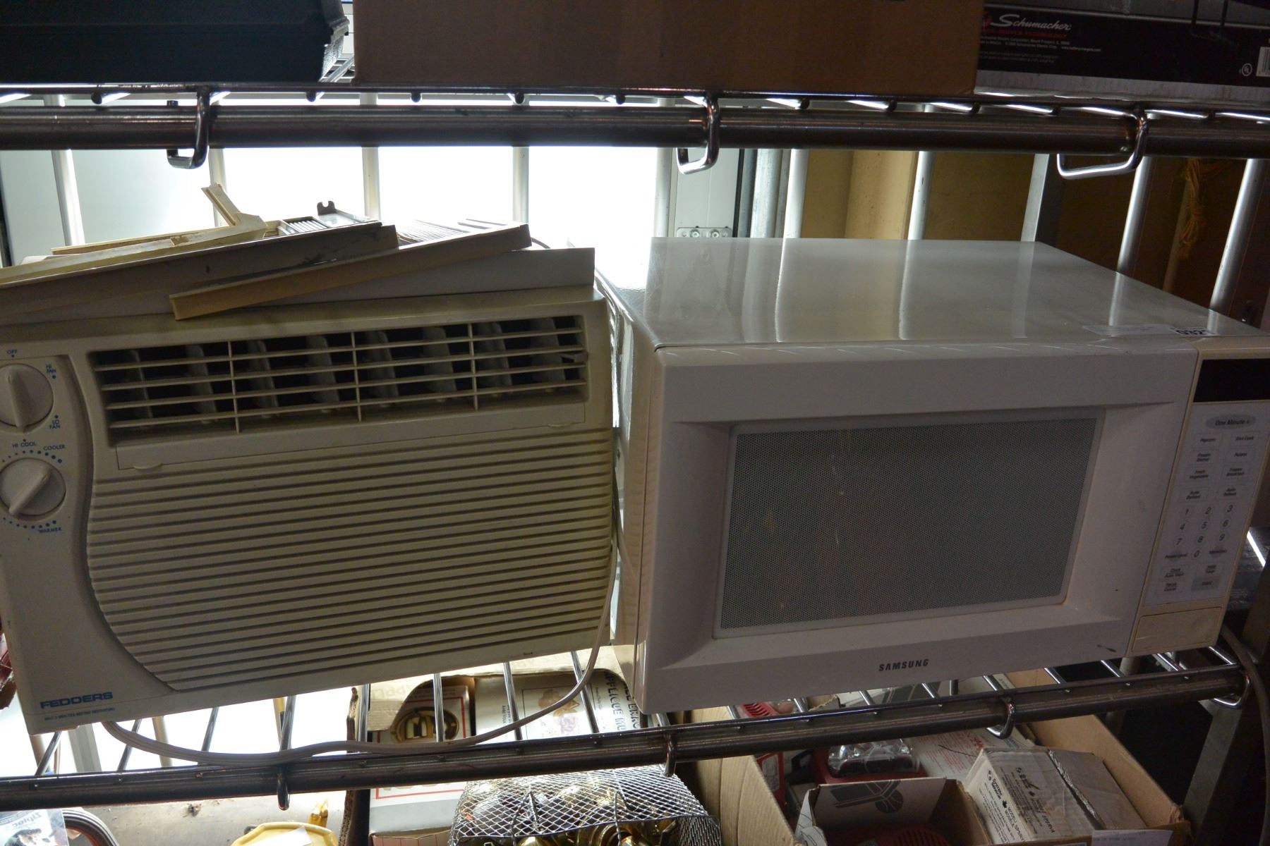 WHITE SAMSUNG MICROWAVE AND FEDDERS AIR CONDITIONER