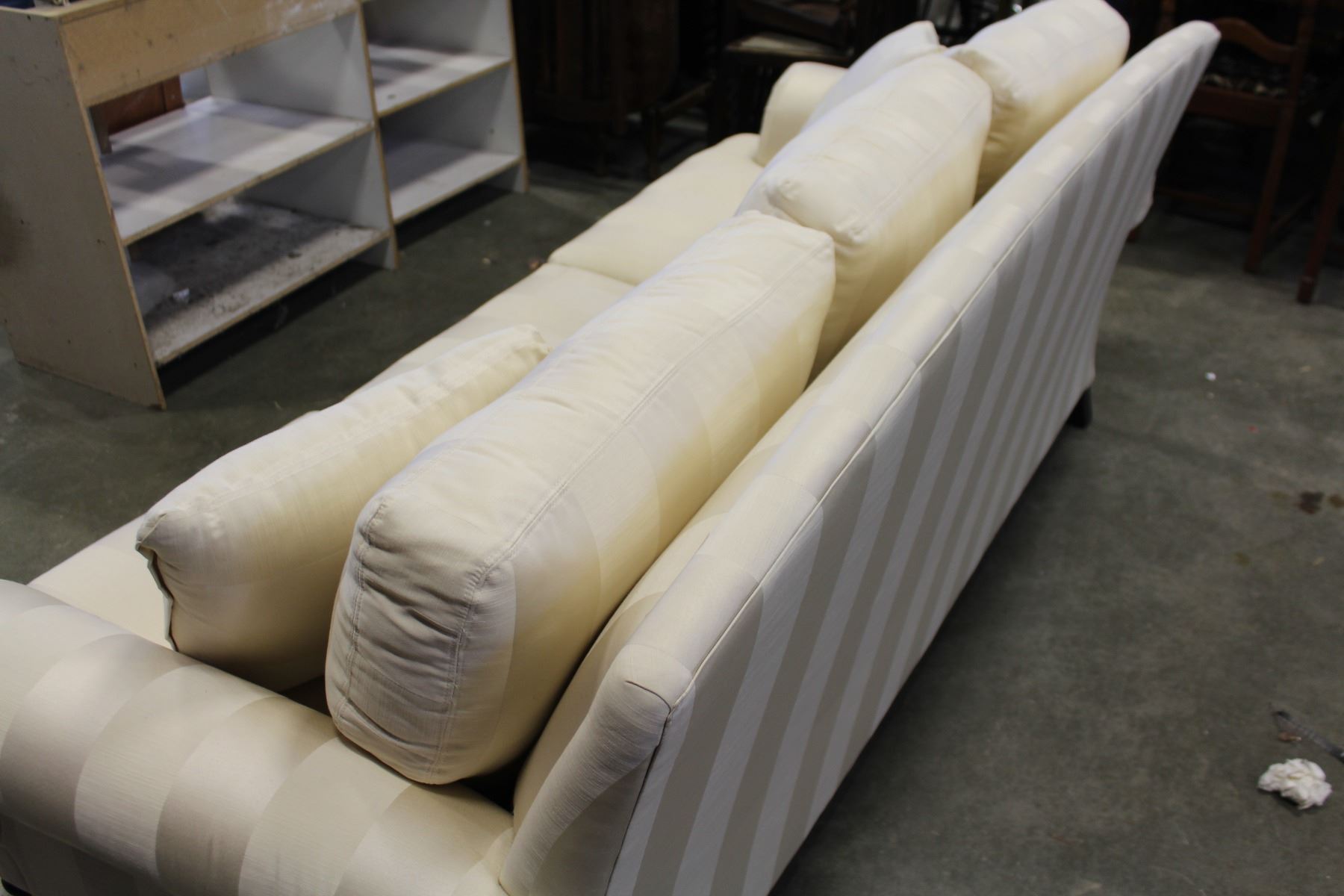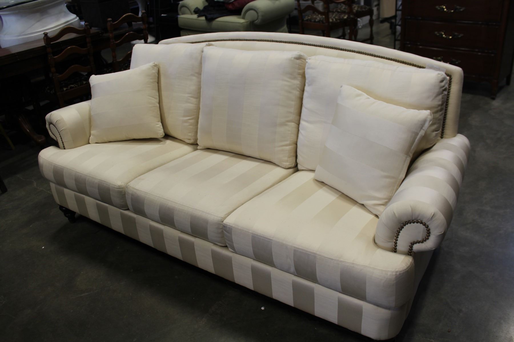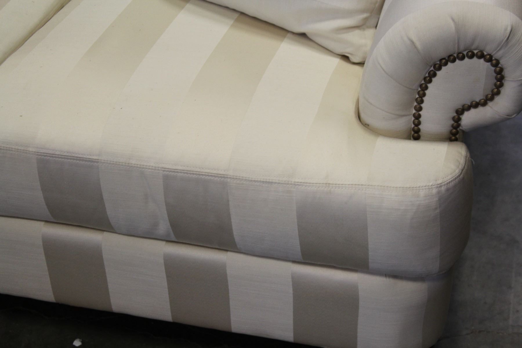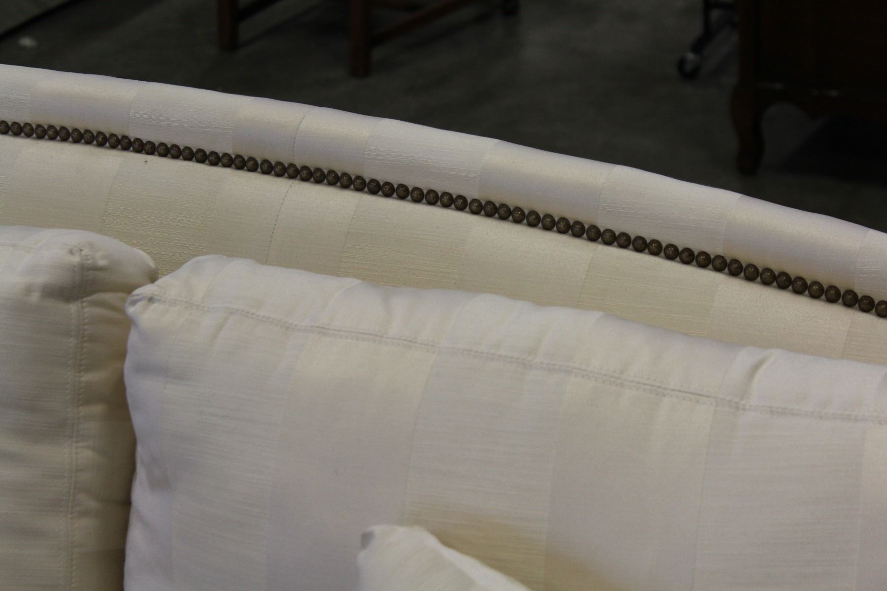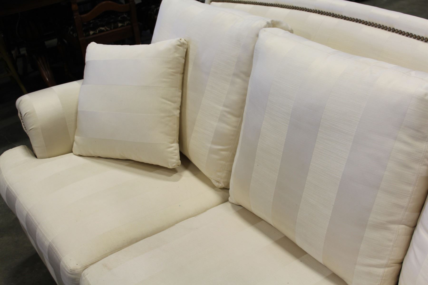 WHITE STUDDED ROLLED ARM PILLOWBACK SOFA