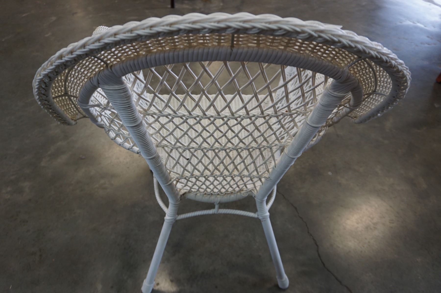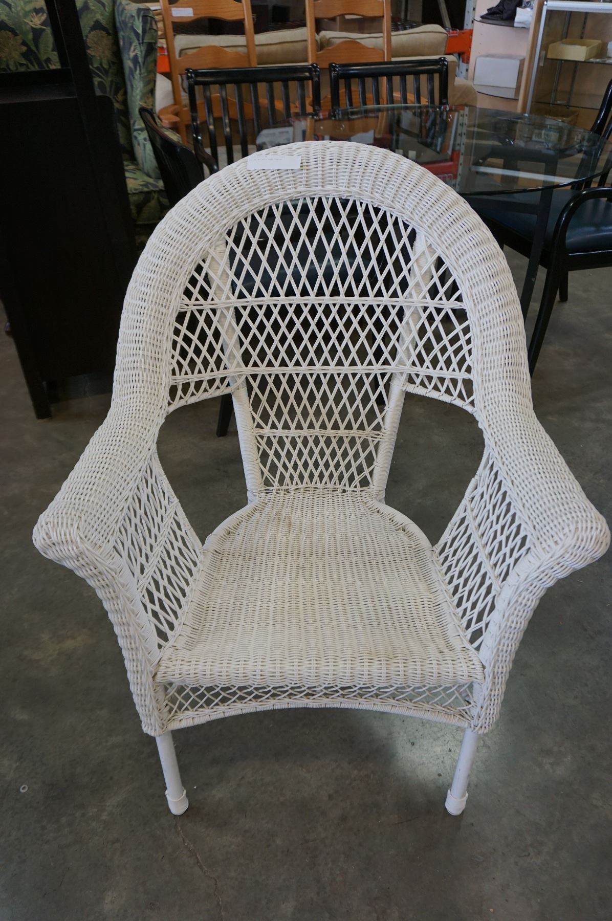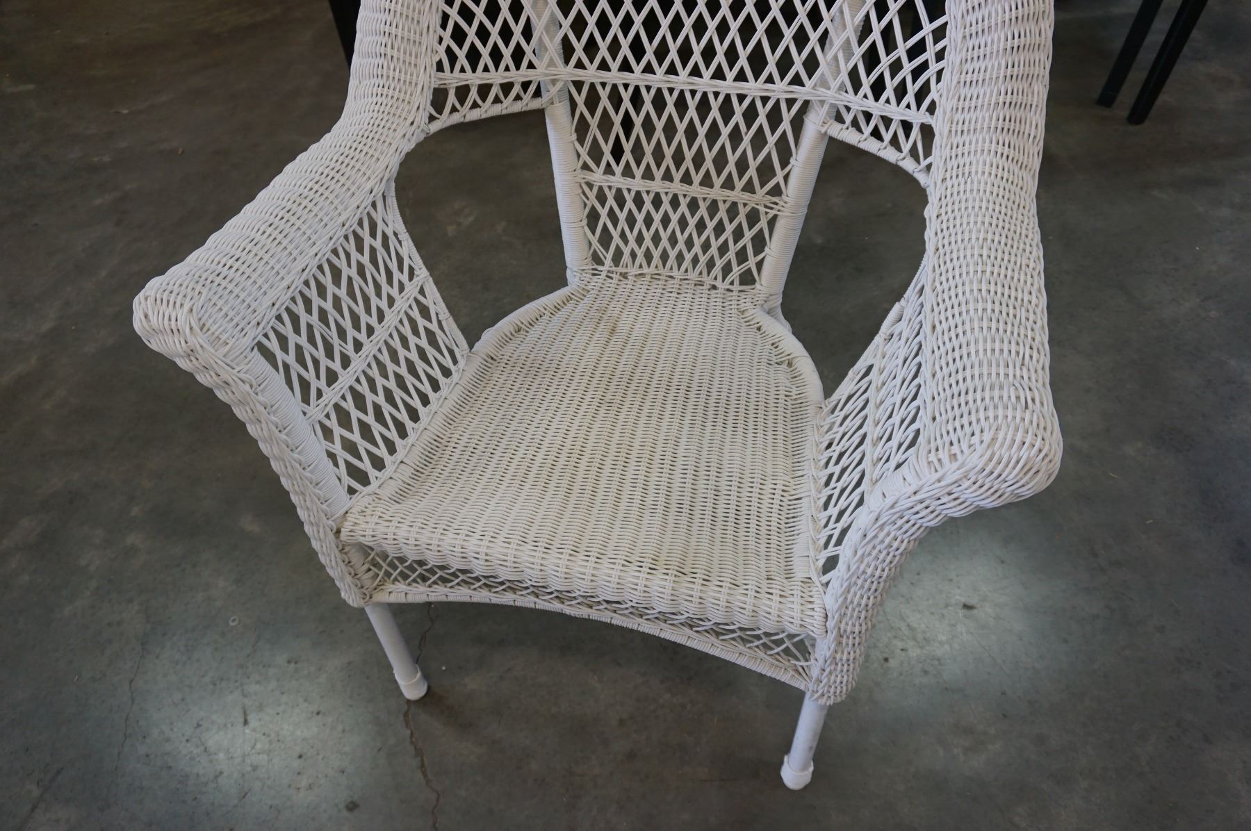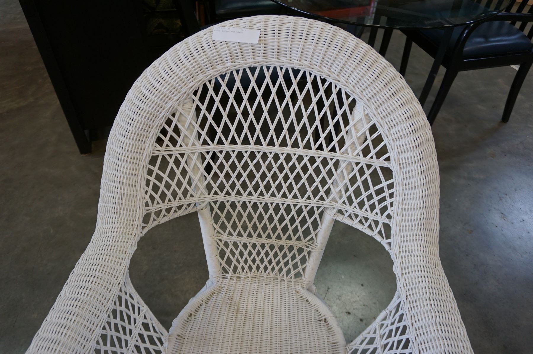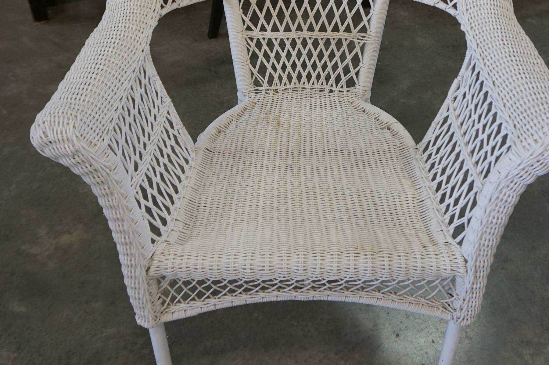WHITE WICKER ARM CHAIR