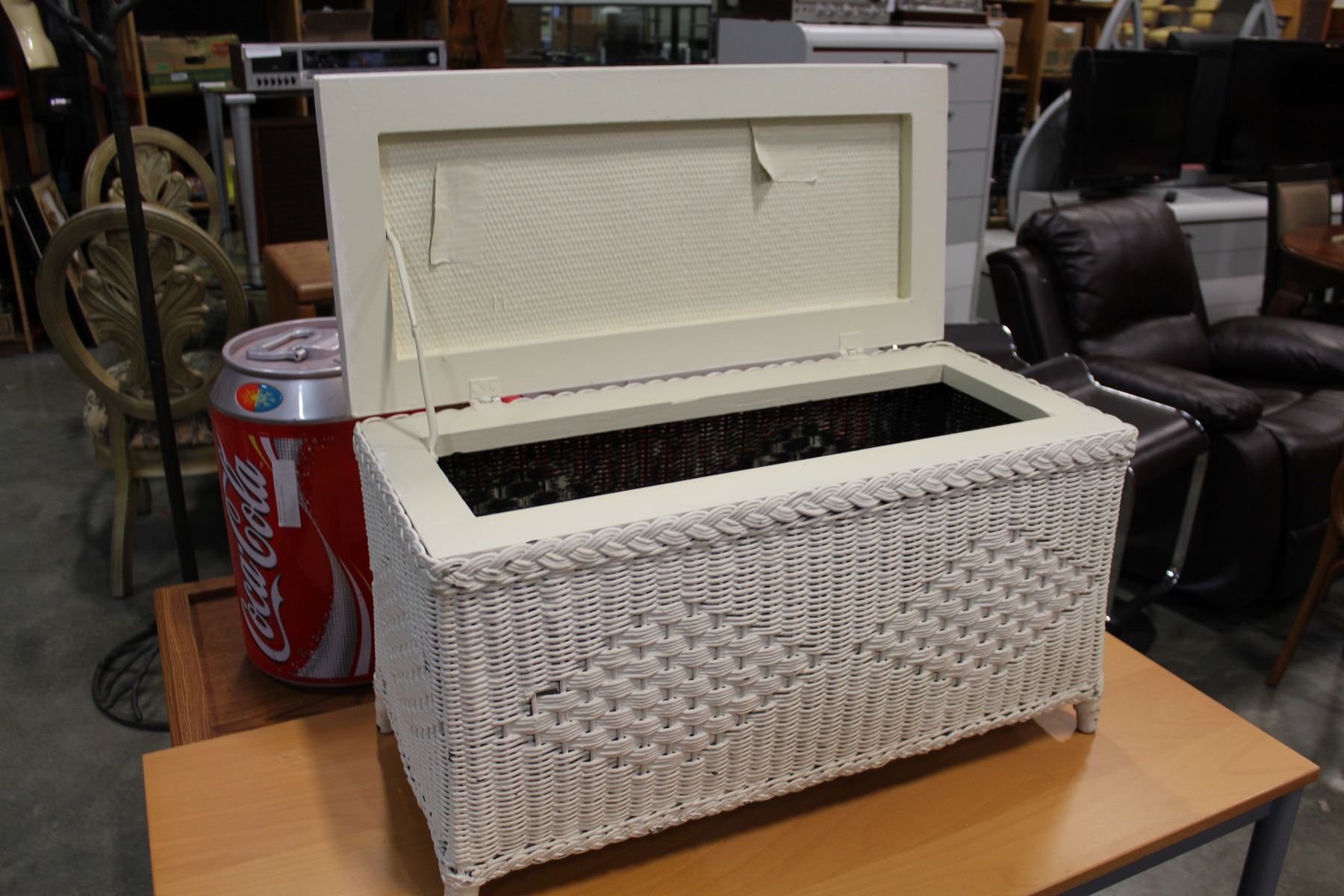WHITE WICKER TRUNK