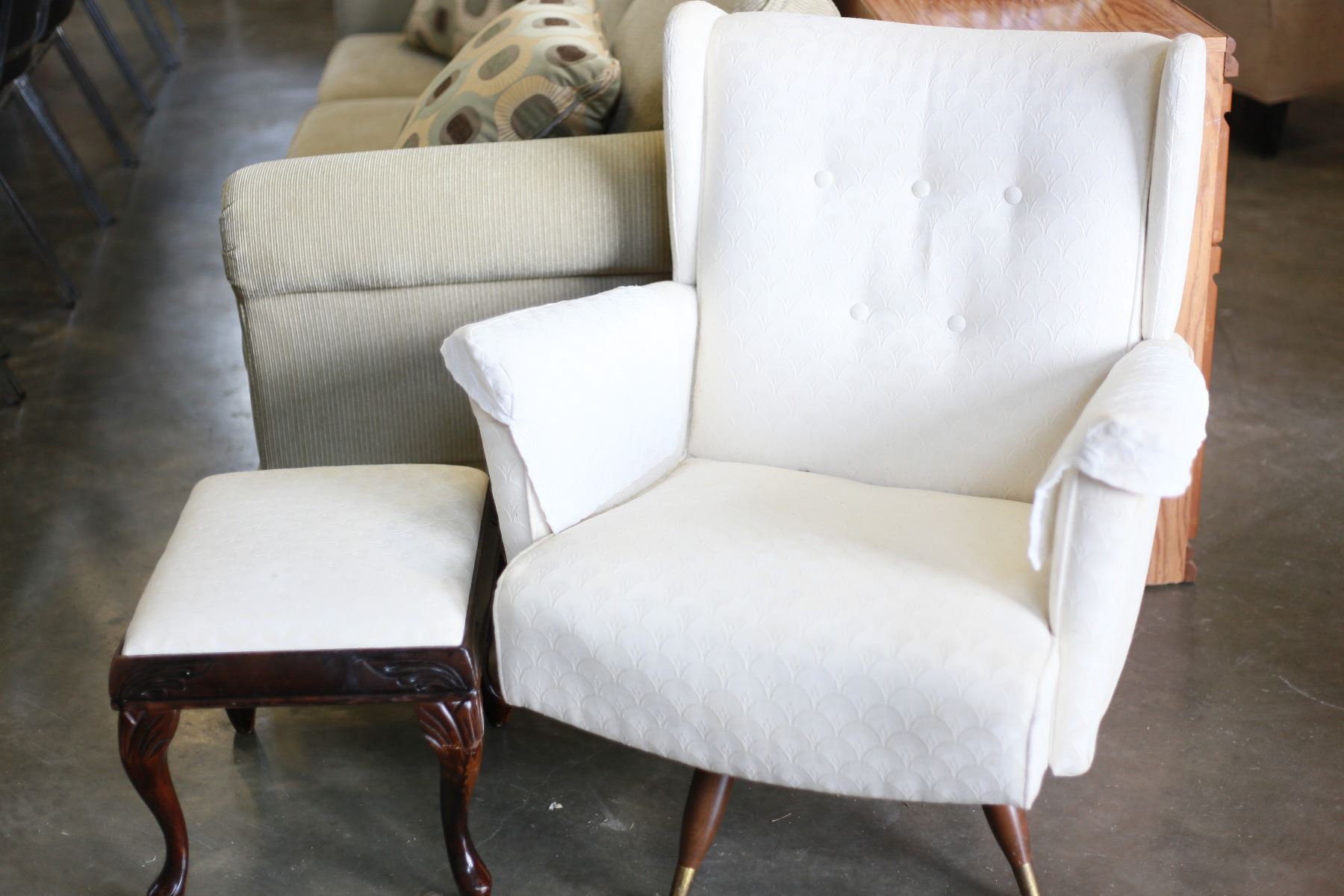 WHITE WING BACK ROCKER AND FOOTSTOOL