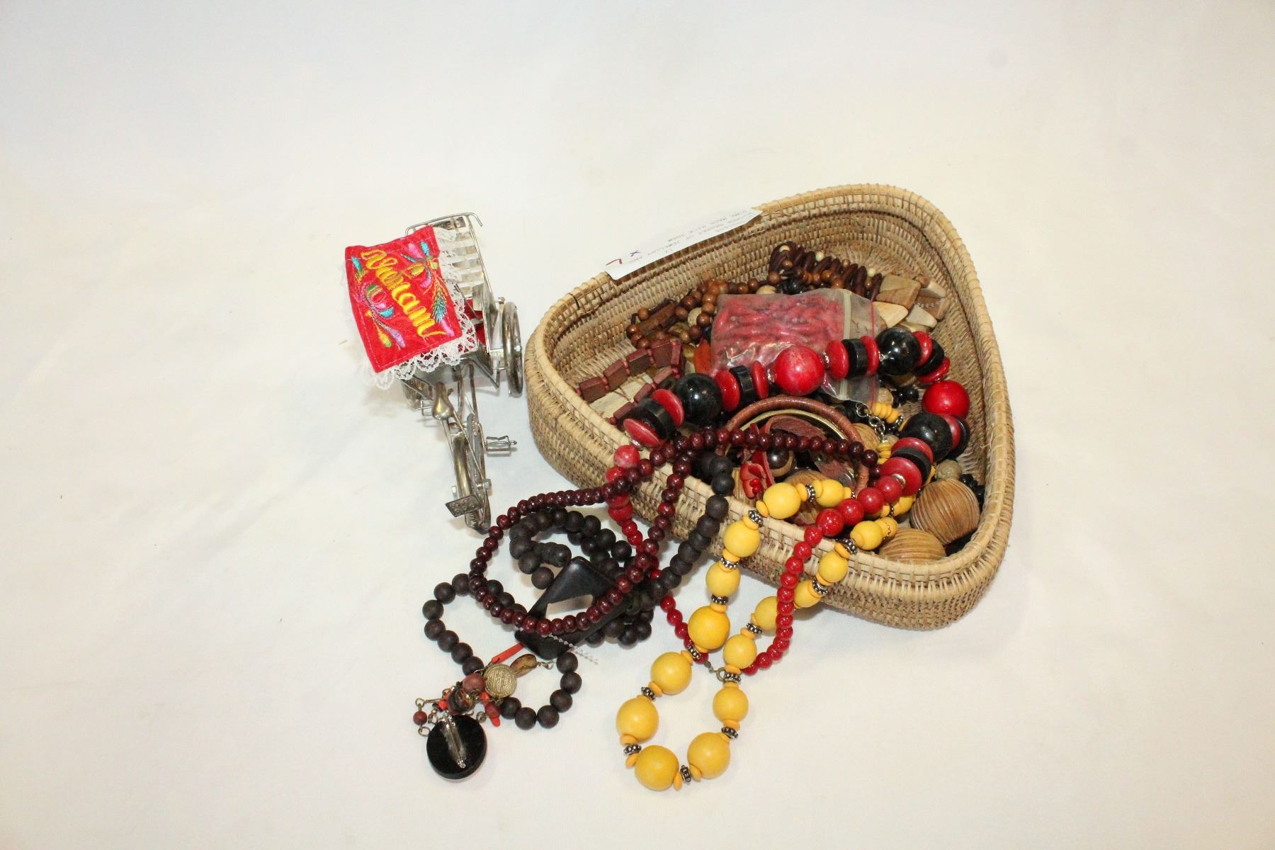 WICKER BASKET OF JEWELLRY AND HOME MADE RICK SHAW