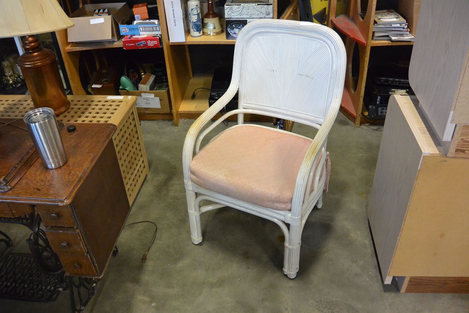 WICKER CHAIR AND WHITE CHAIR
