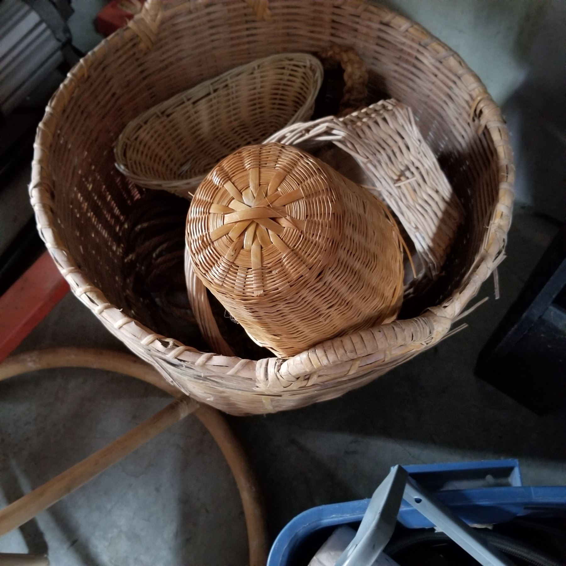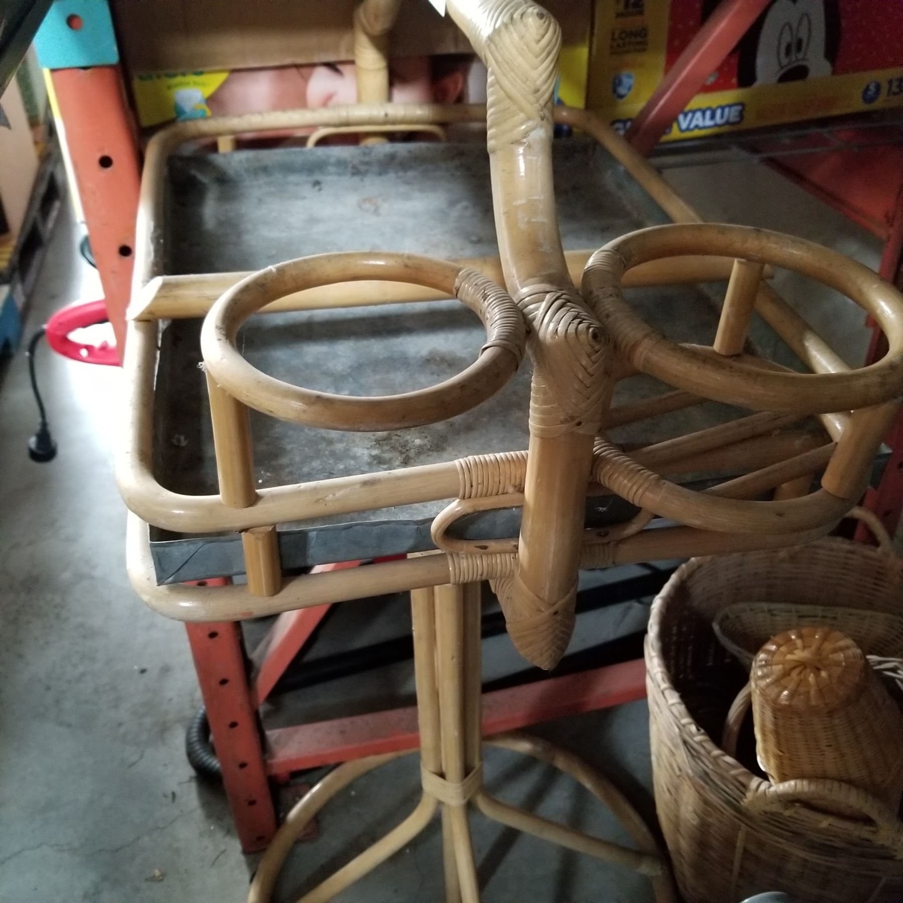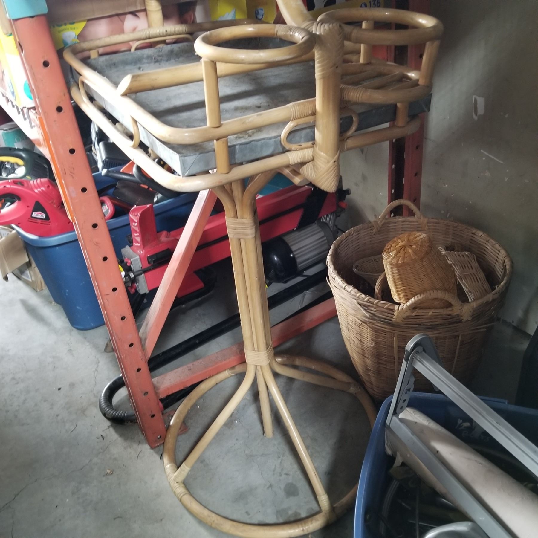 WICKER HAMPER, BASKETS, AND RATTAN STAND