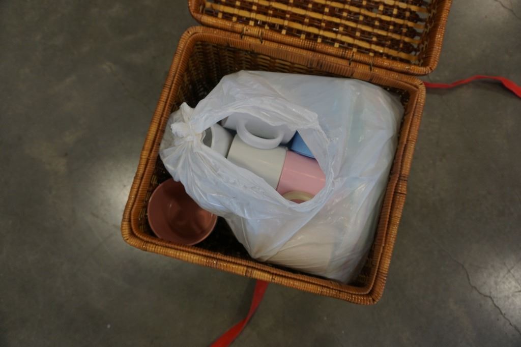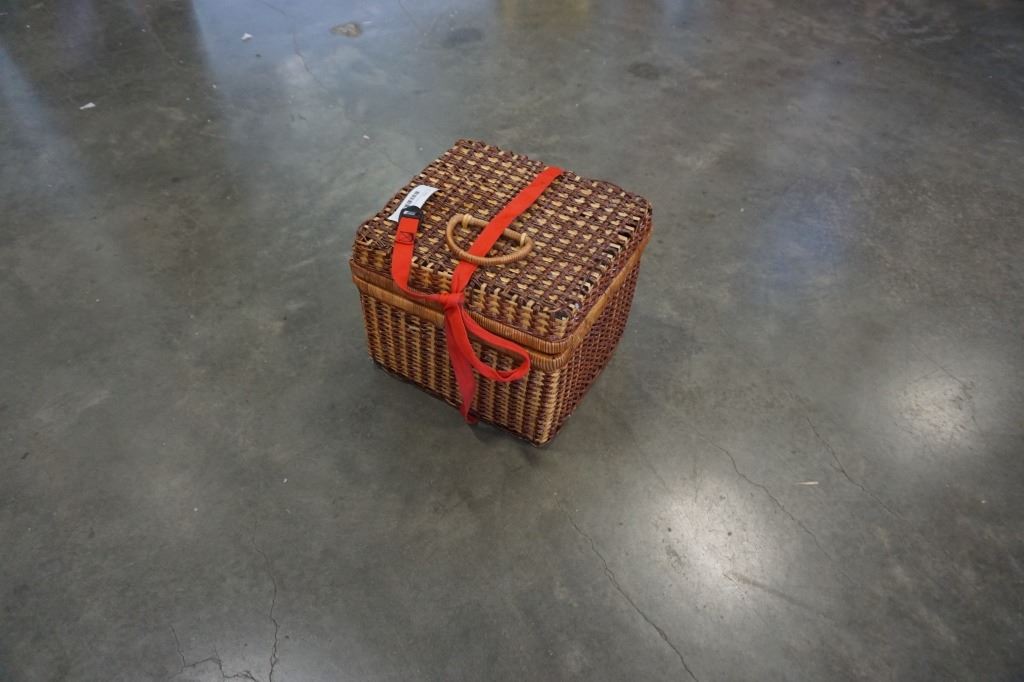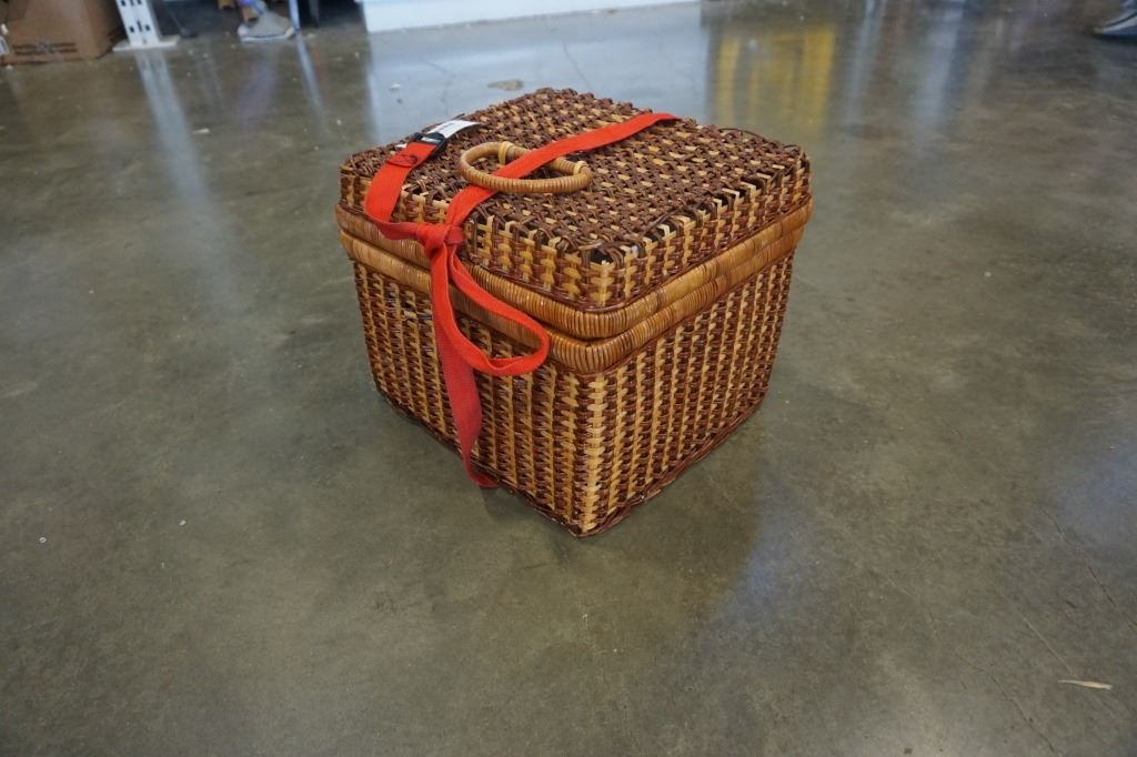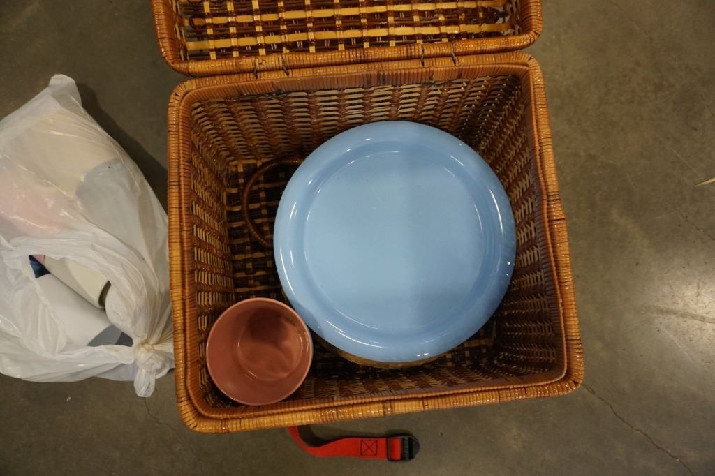 WICKER PICNIC BASKET WITH PICNIC DISHES