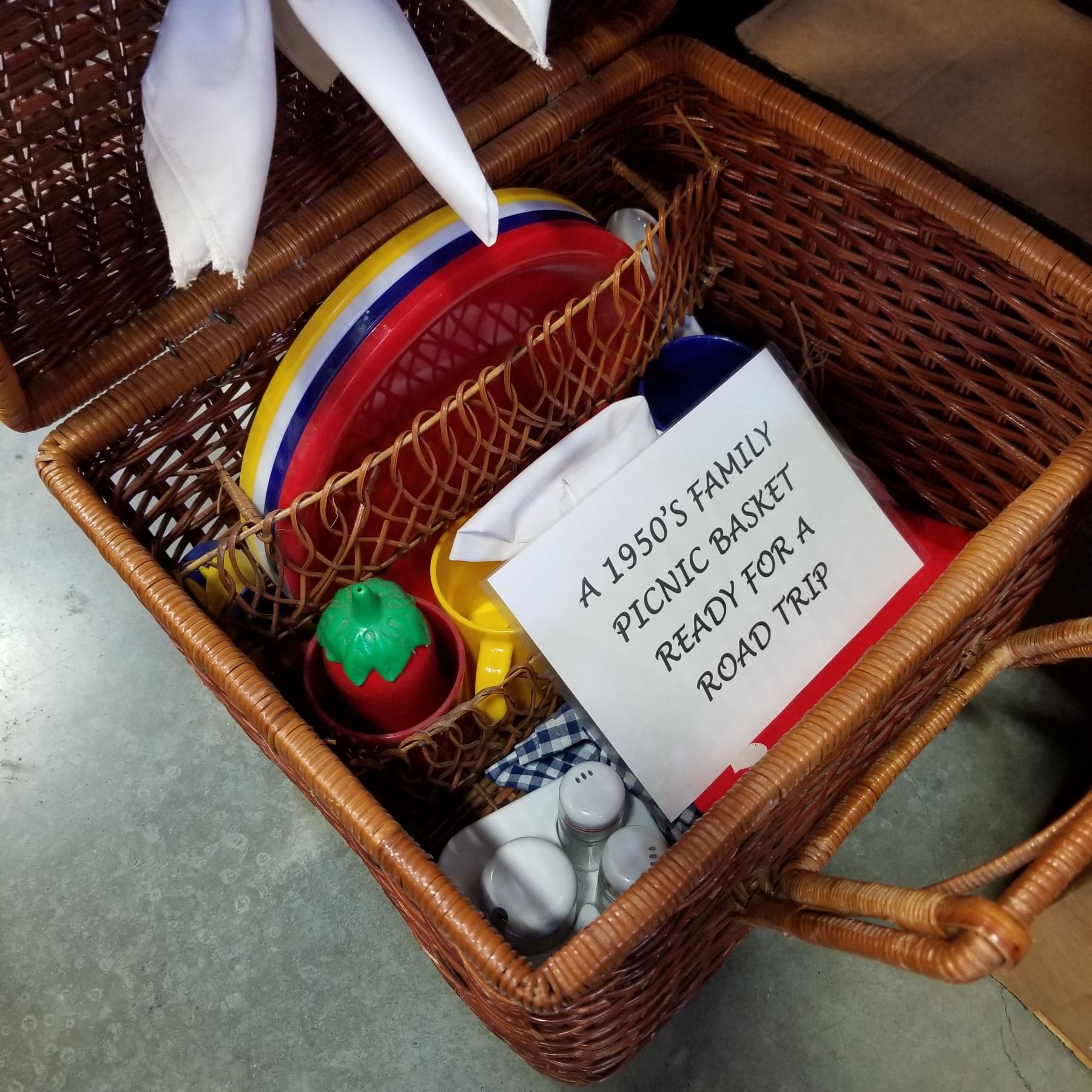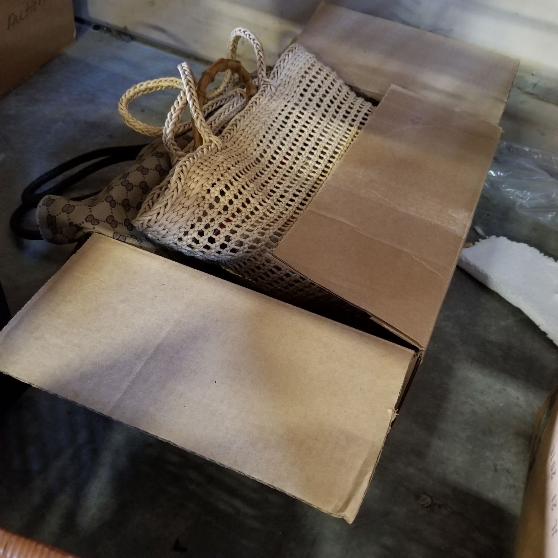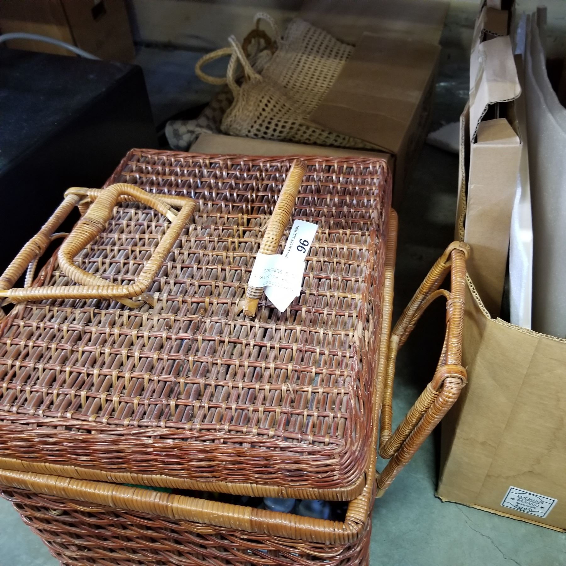 WICKER PICNIK BASKET W/ DISHES AND 3 PURSES