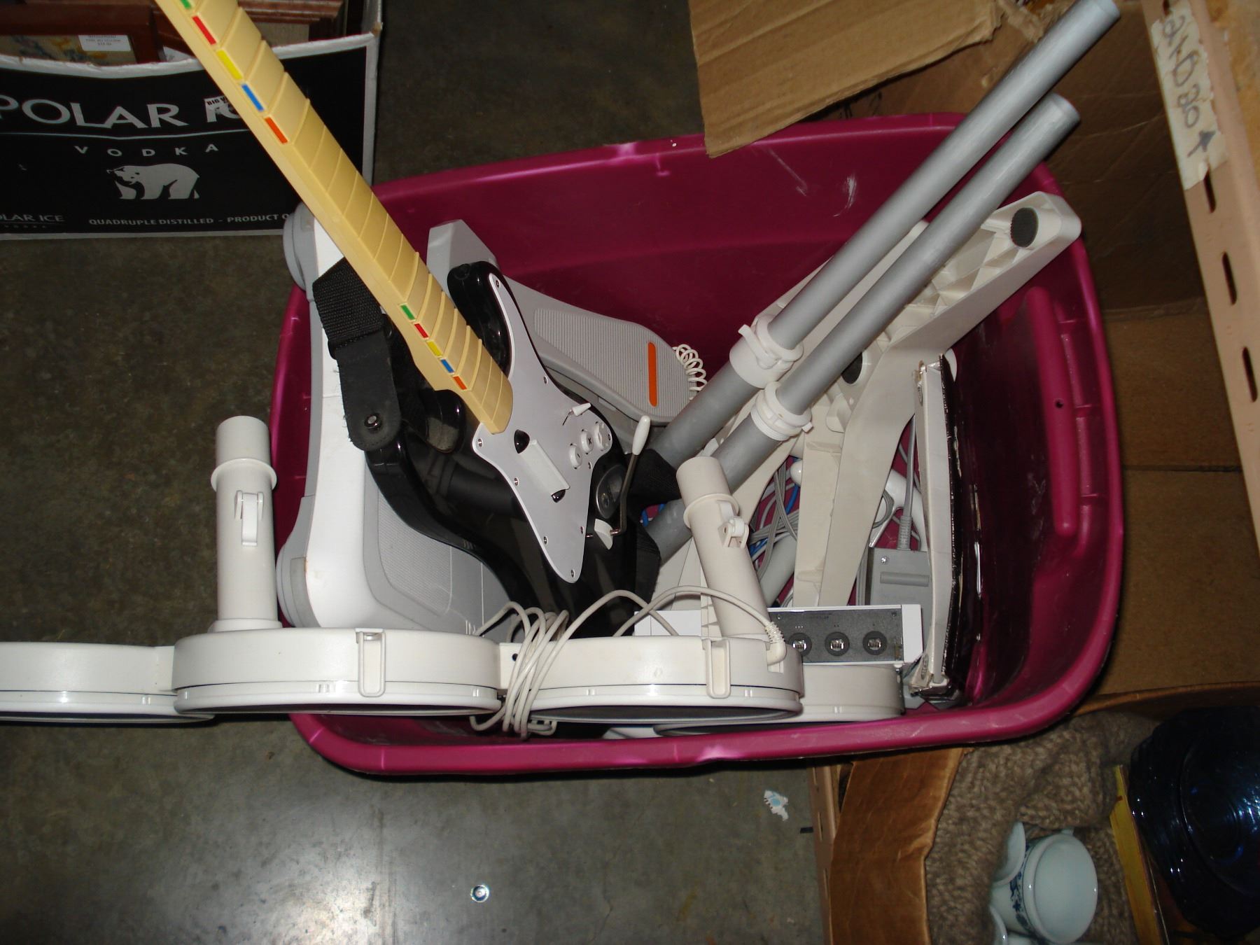 WII CONSOLE WITH ROCKBAND CONTROLLERS