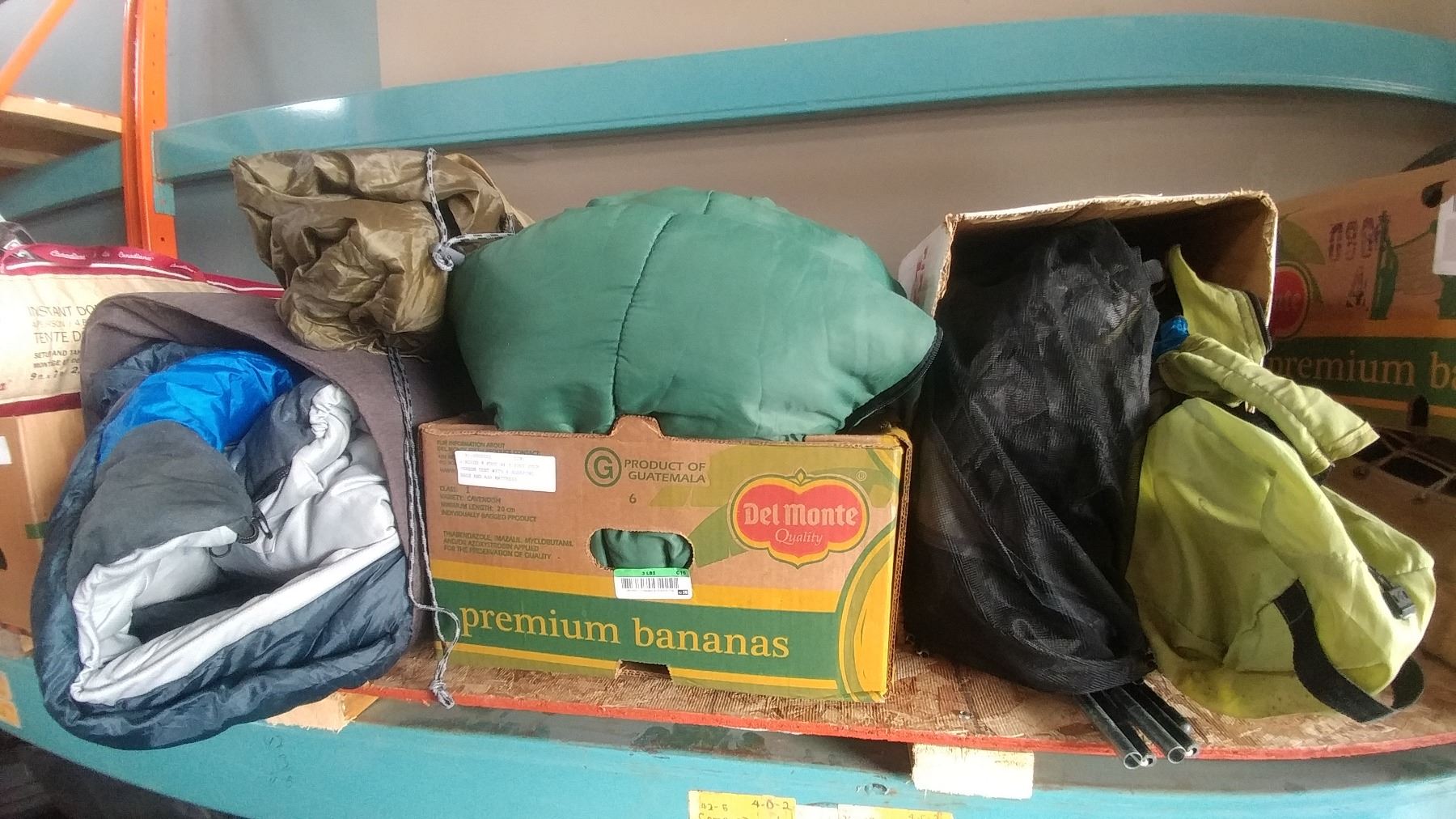 WINDIGO 9 FOOT BY 8 FOOT FOUR PERSON TENT WITH 4 SLEEPING BAGS AND AIR MATTRESS
