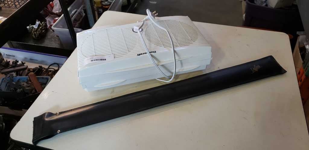 WINDOW FAN AND POOL CUE