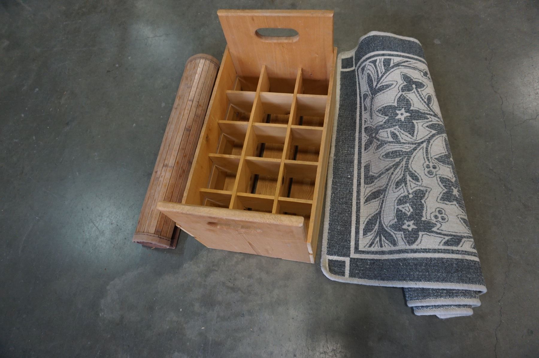 WINE CRATE, BAMBOO FLOOR MAT AND CARPET RUNNER