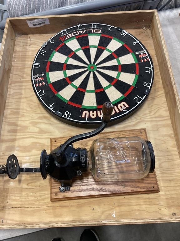 WINMAU CORK DART BOARD AND VINTAGE COFFEE GRINDER