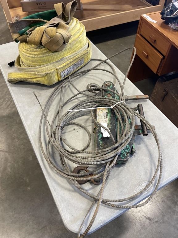 WIRE ROPE PULLEY AND LOT OF LIFTING SLINGS