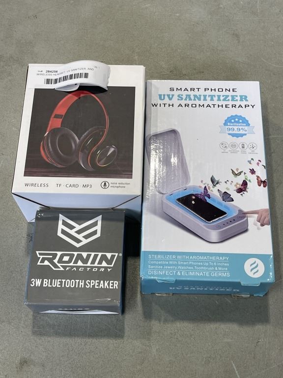 WIRELESS HEADSET, UV SANITIZER, AND BLUETOOTH SPEAKER