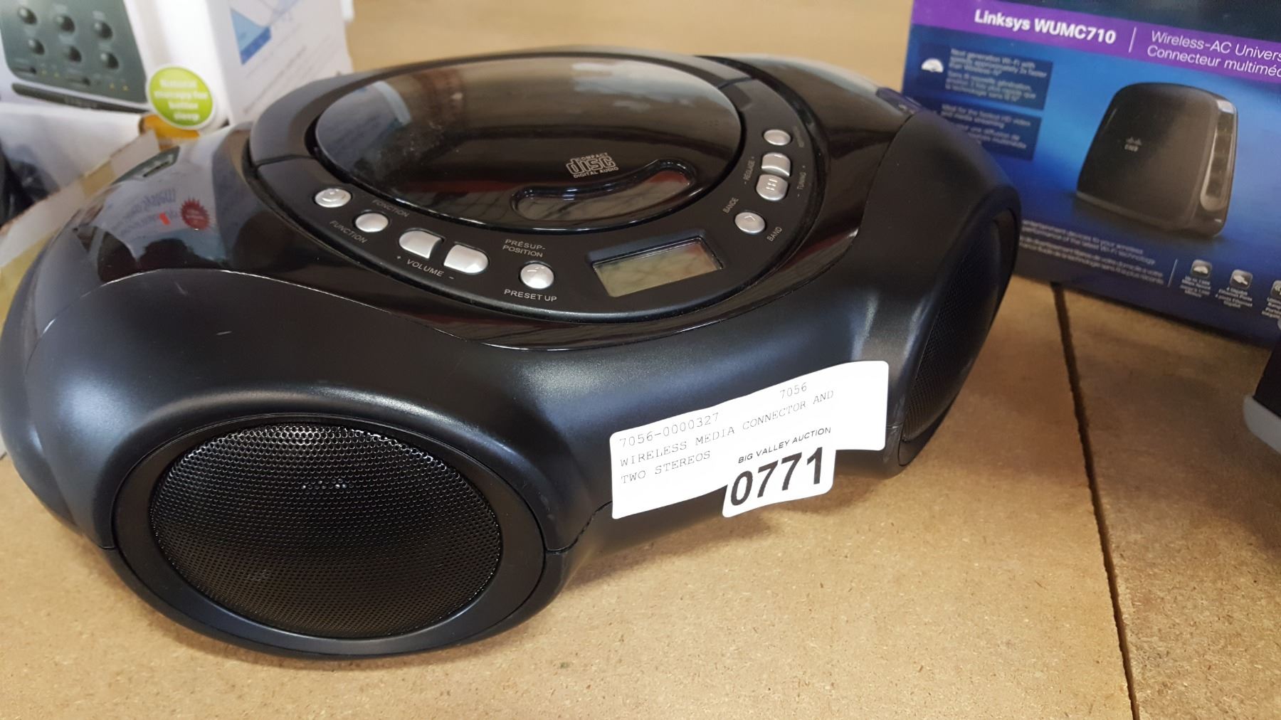 WIRELESS MEDIA CONNECTOR AND TWO STEREOS