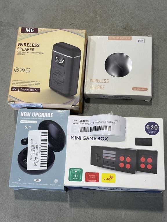 WIRELESS SPEAKER, HANDHELD GAMER, WIRELESS EARBUDS, AND WIRELESS CHARGER