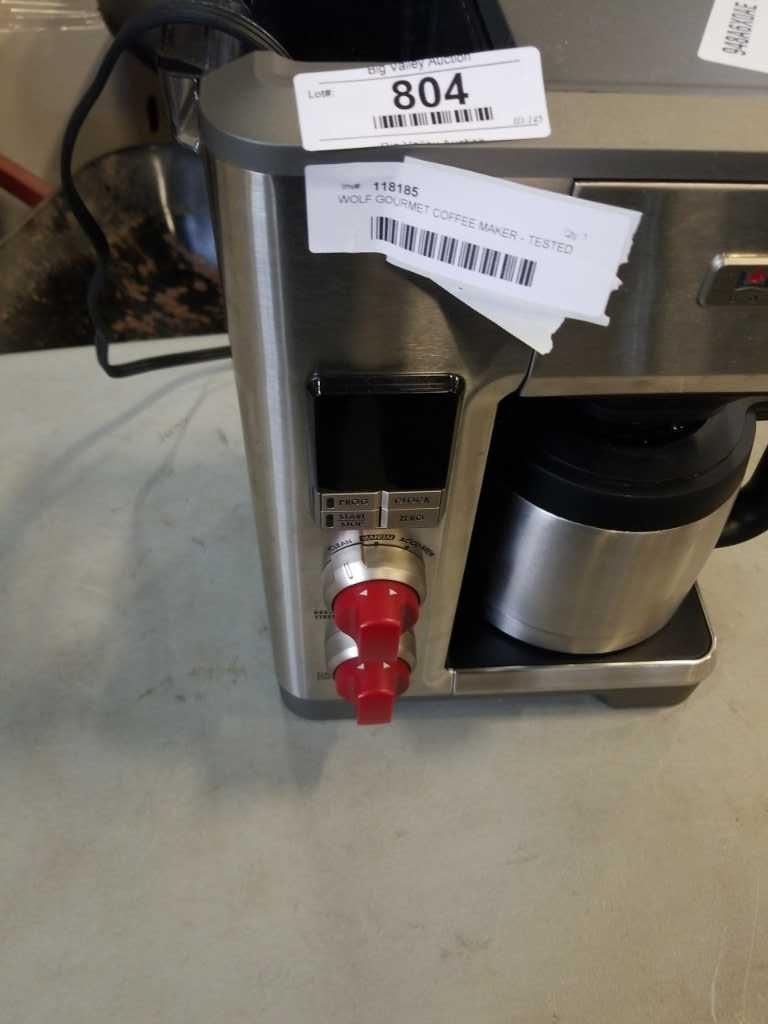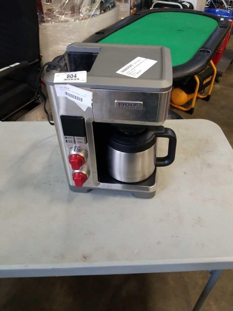 WOLF GOURMET COFFEE MAKER - TESTED WORKING, NO LID FOR WATER RESERVOIR - RETAIL $799