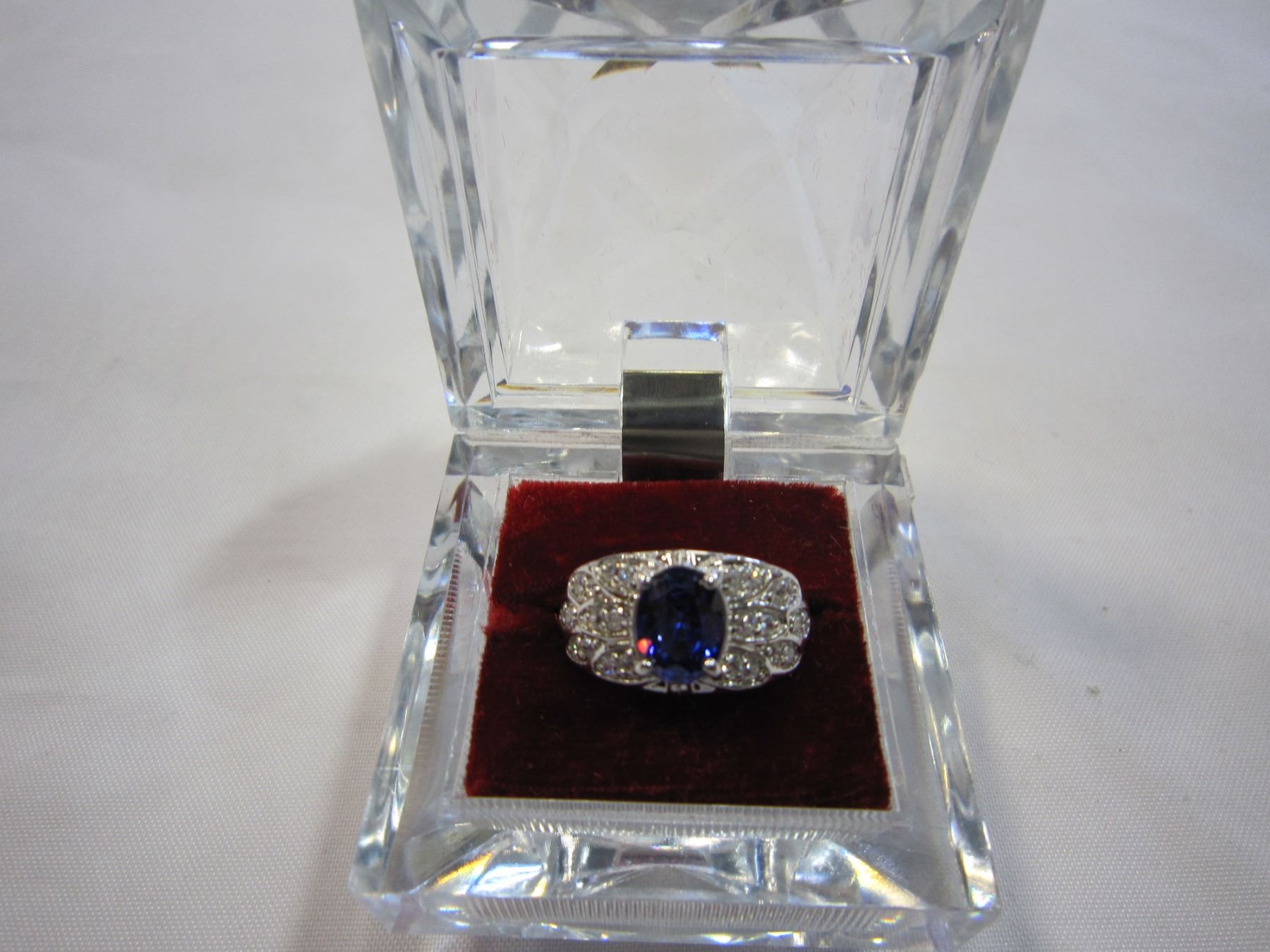 WOMANS RING WITH POSSIBLE SAPHIRE STONE MARKED 925 SILVER