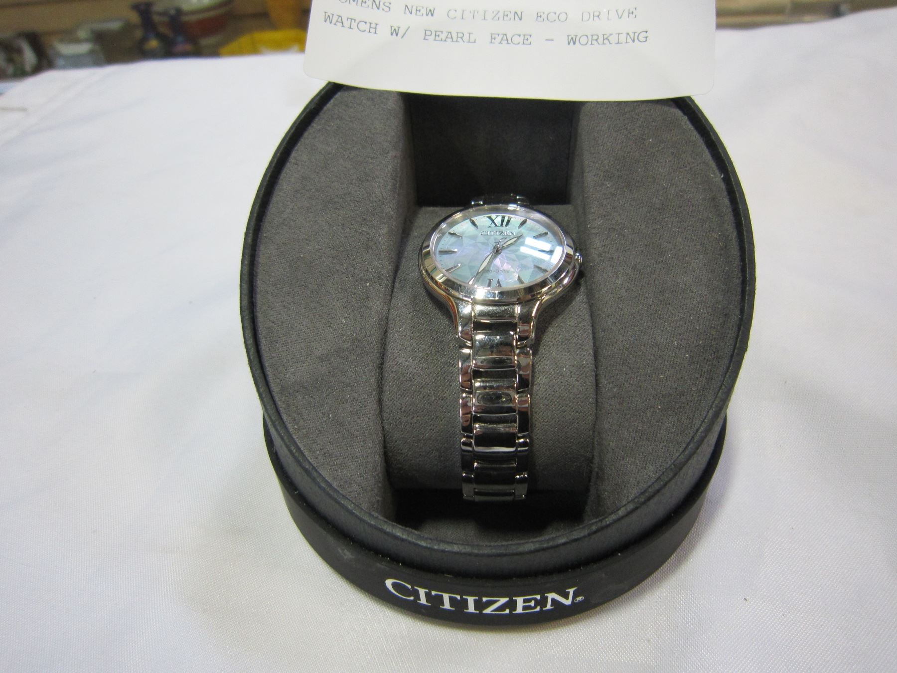 WOMENS NEW CITIZEN ECO DRIVE WATCH W/ PEARL FACE - WORKING