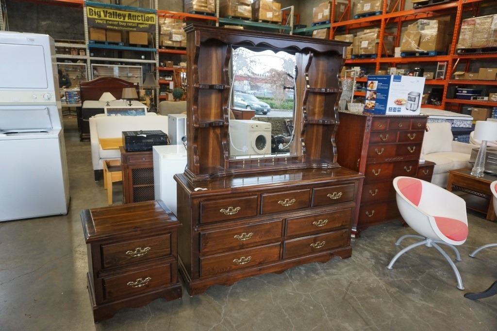 WOOD 7 DRAWER DRESSER WITH MIRROR GALLERY AND NIGHTSTAND