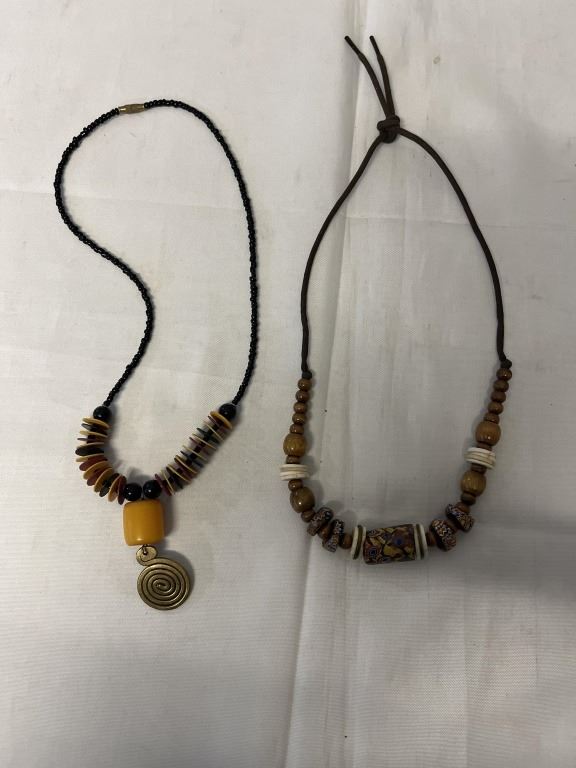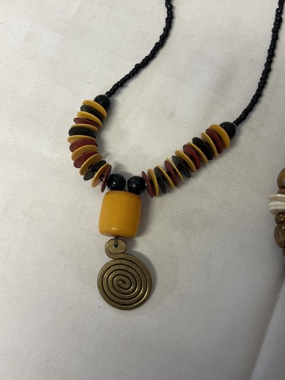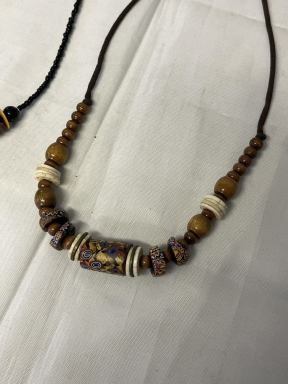 WOOD AMBER AND CHEVRON BEADS NECKLACE