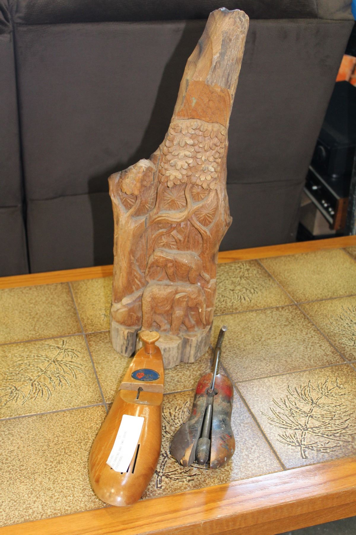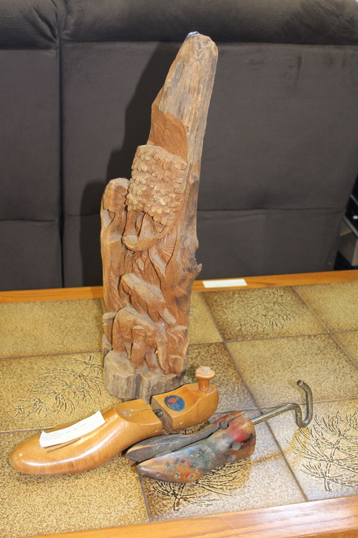 WOOD CARVING AND TWO SHOE STRETCHERS