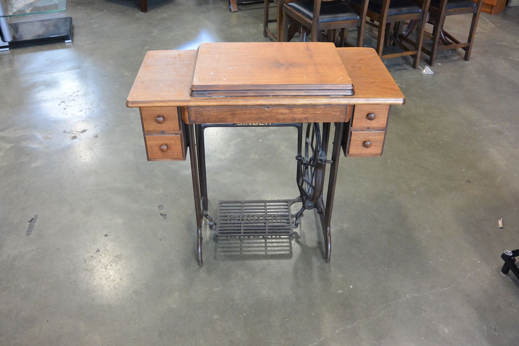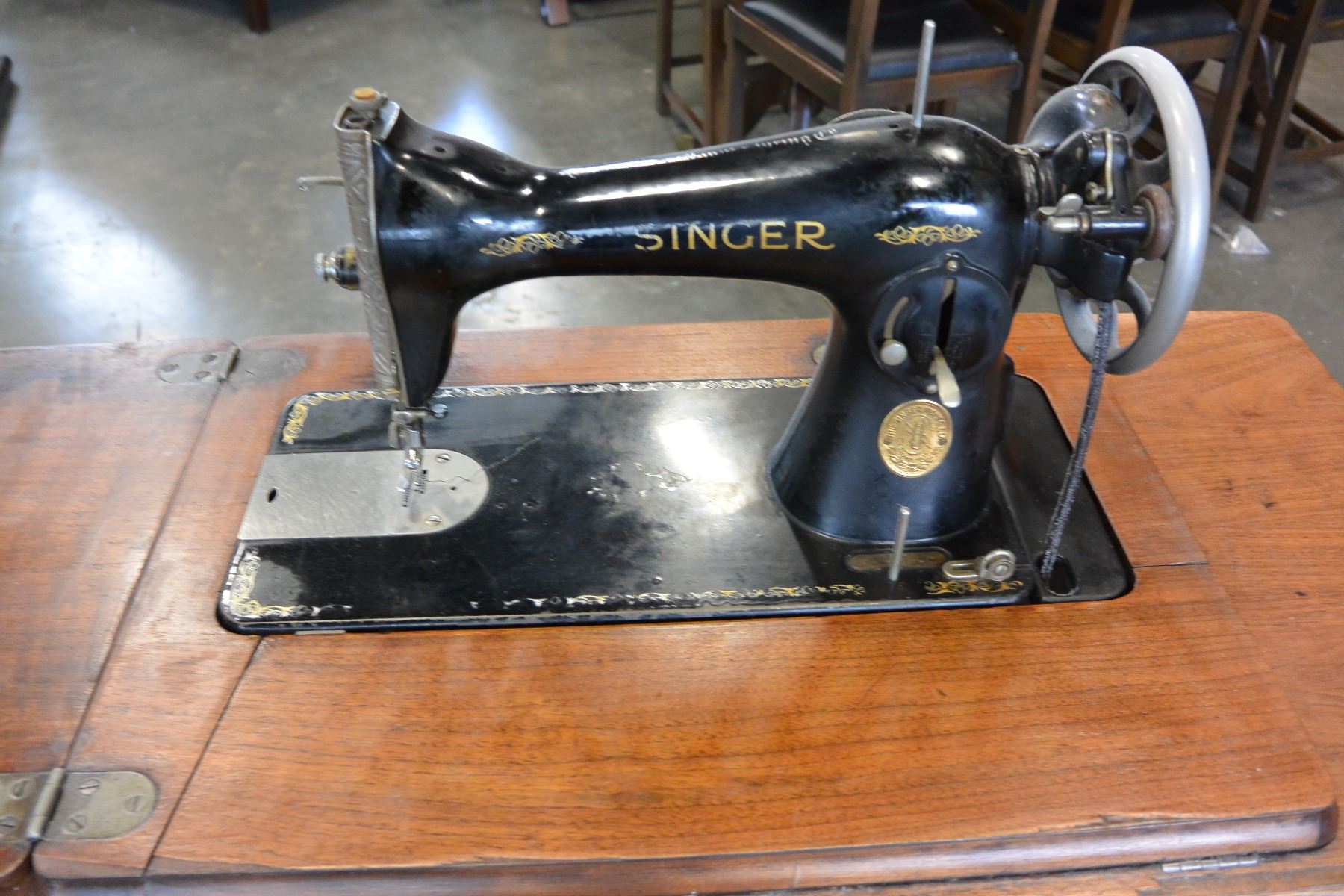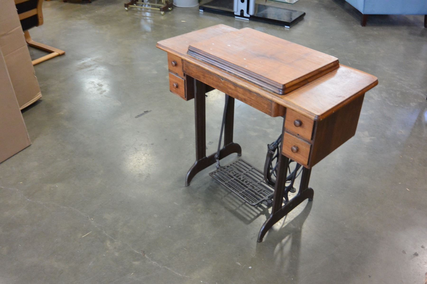 WOOD CASED SINGLE TREADLE BASE SEWING MACHINE