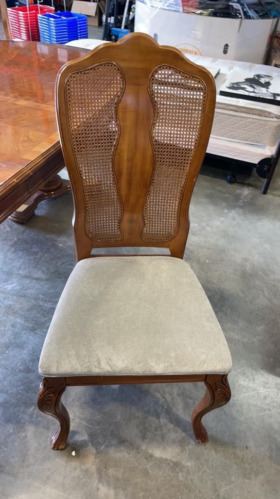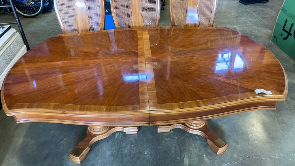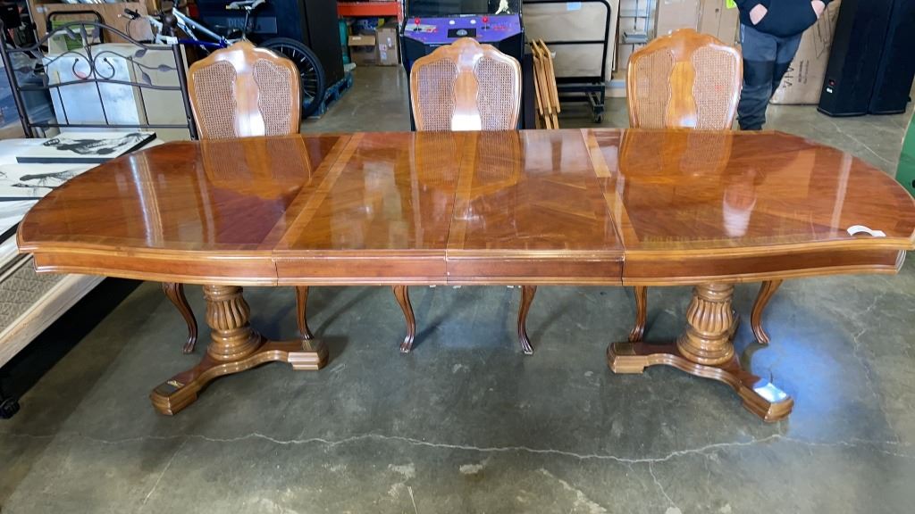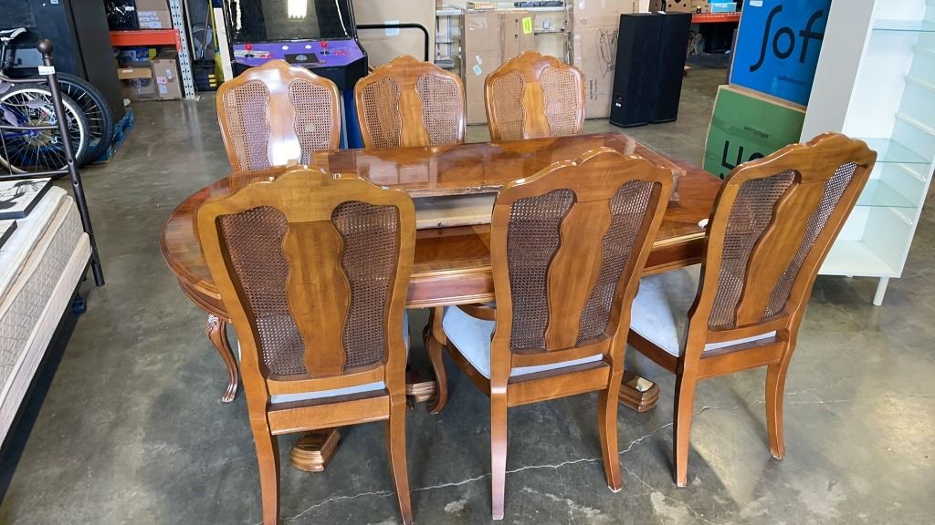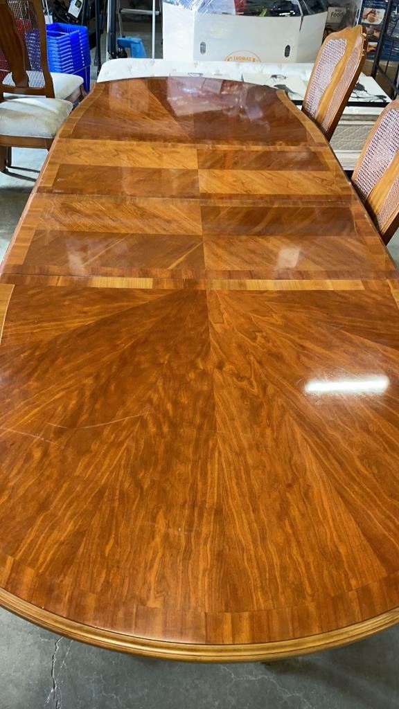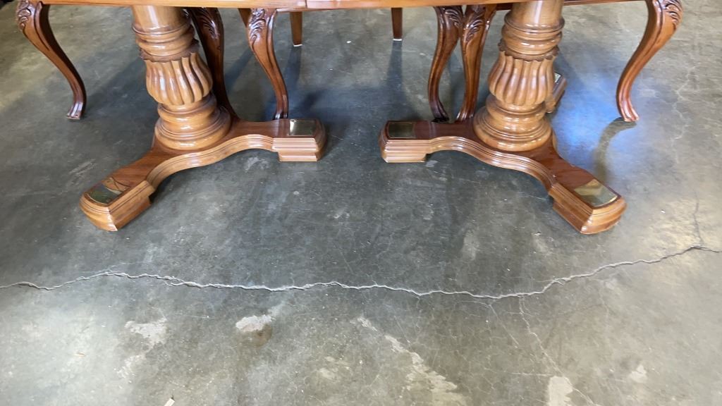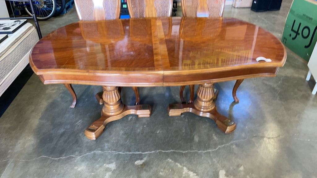 WOOD DINING TABLE WITH 2 LEAFS AND 6 CHAIRS