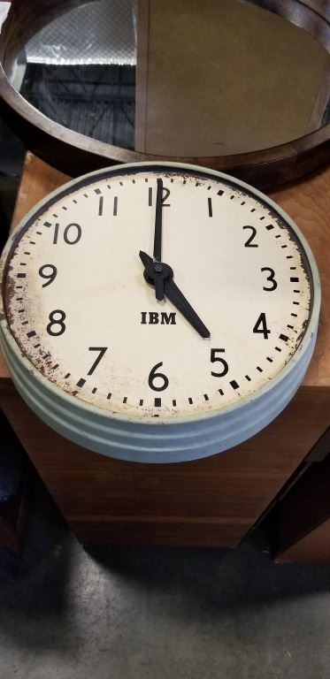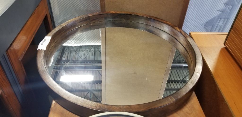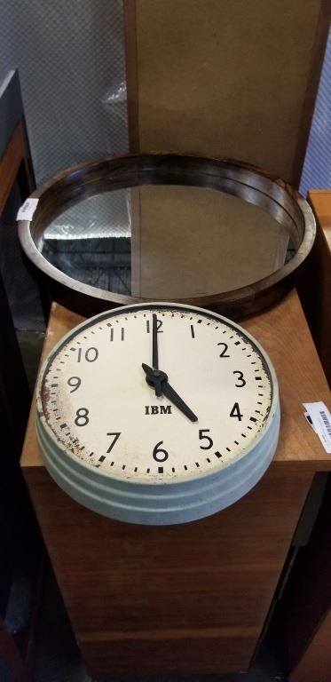 WOOD FRAME WALL MIRROR AND VINTAGE WALL CLOCK