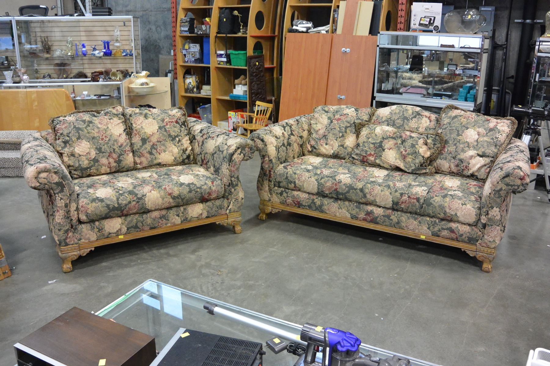 WOOD FRAMED ROLLED ARM SOFA AND LOVESEATS