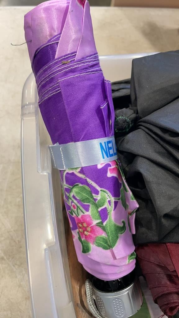 WOOD JEWELRY BOX WITH JEWELRY, WATCHES AND UMBRELLAS