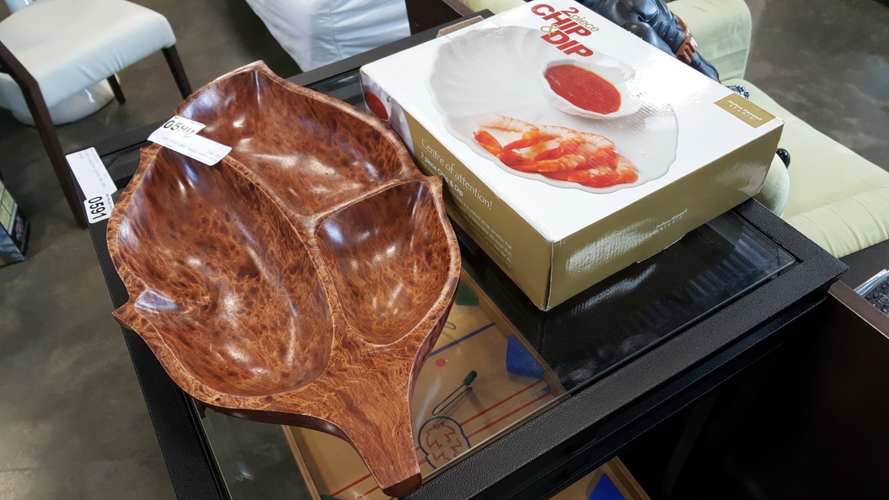 WOOD LEAF TRAY, AND CHIP AND DIP SET
