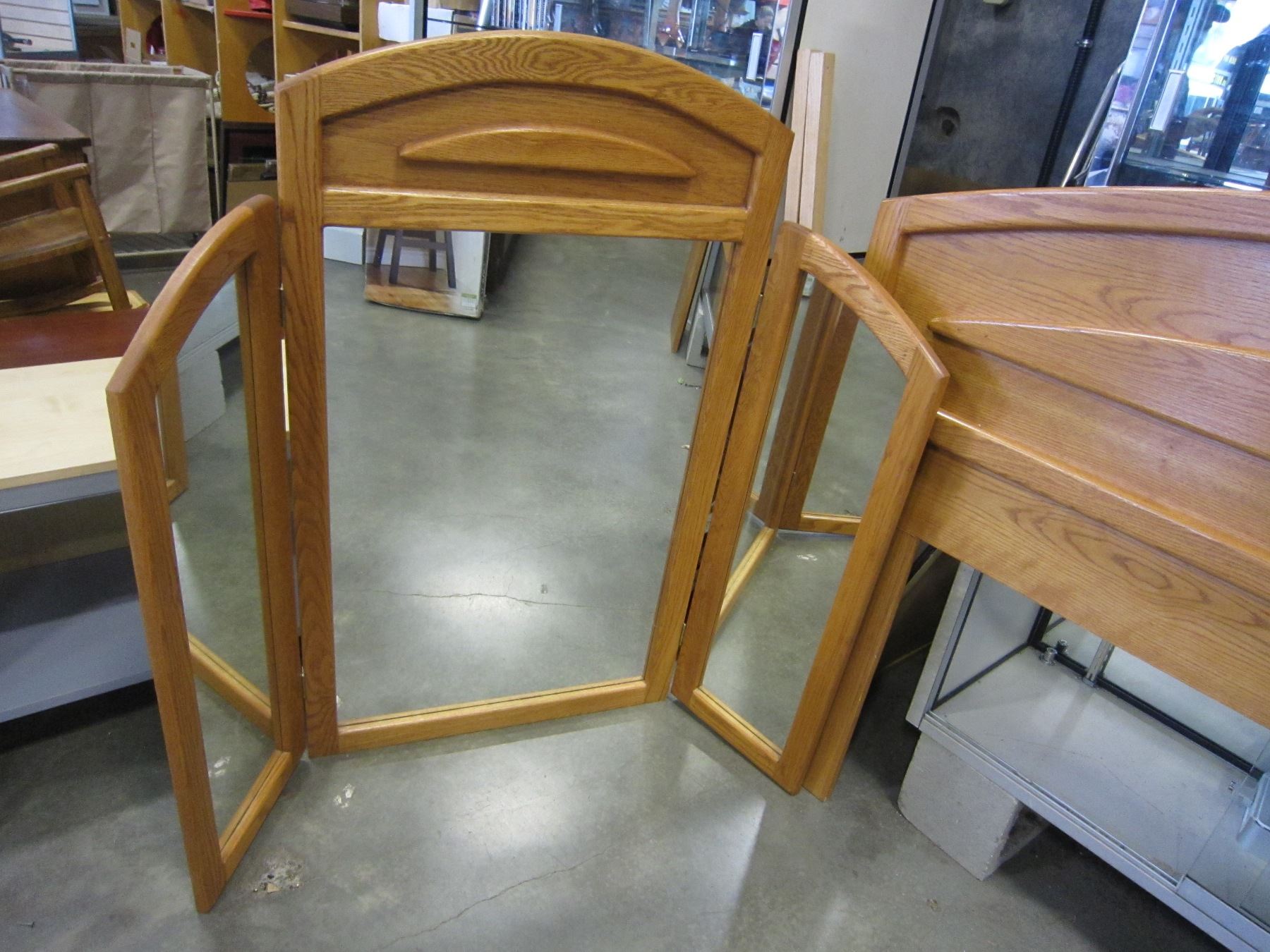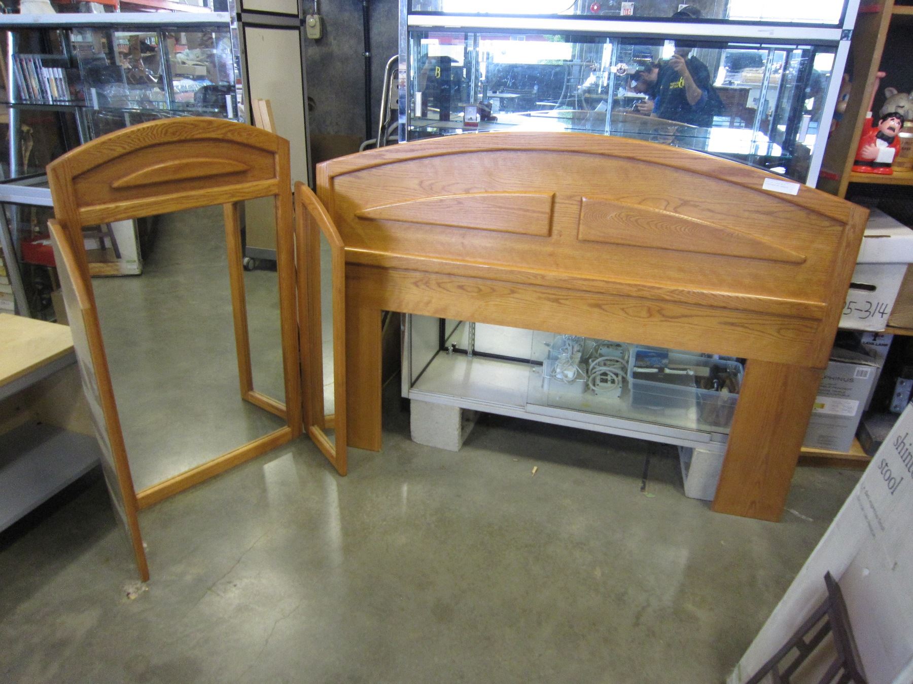 WOOD OAK MIRROR W/ 2 NIGHTSTANDS AND HEADBOAD