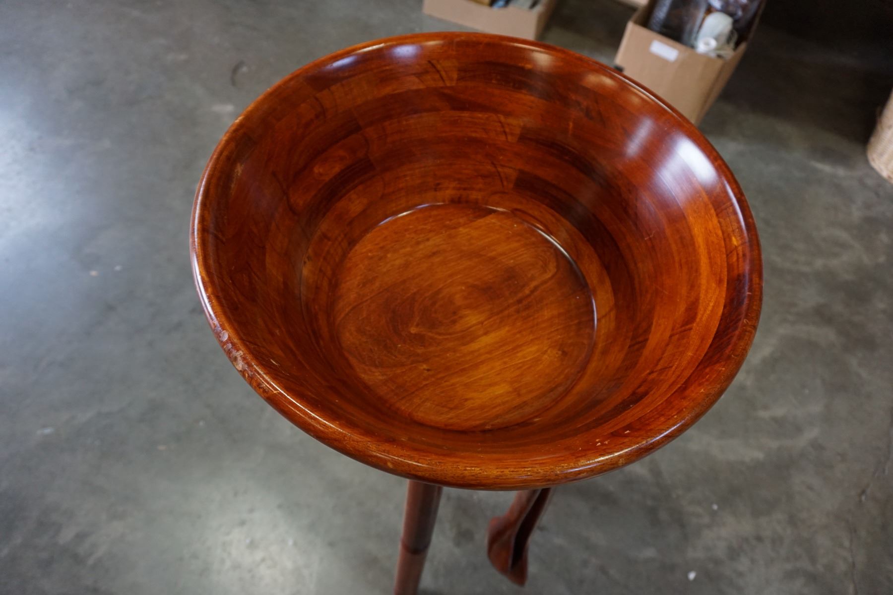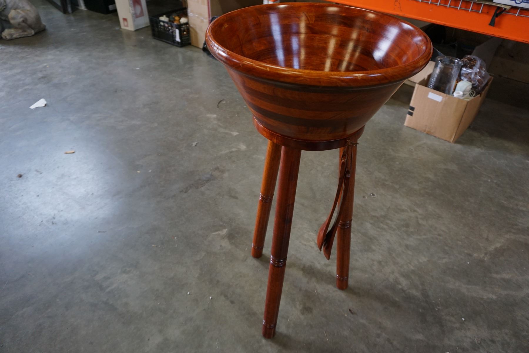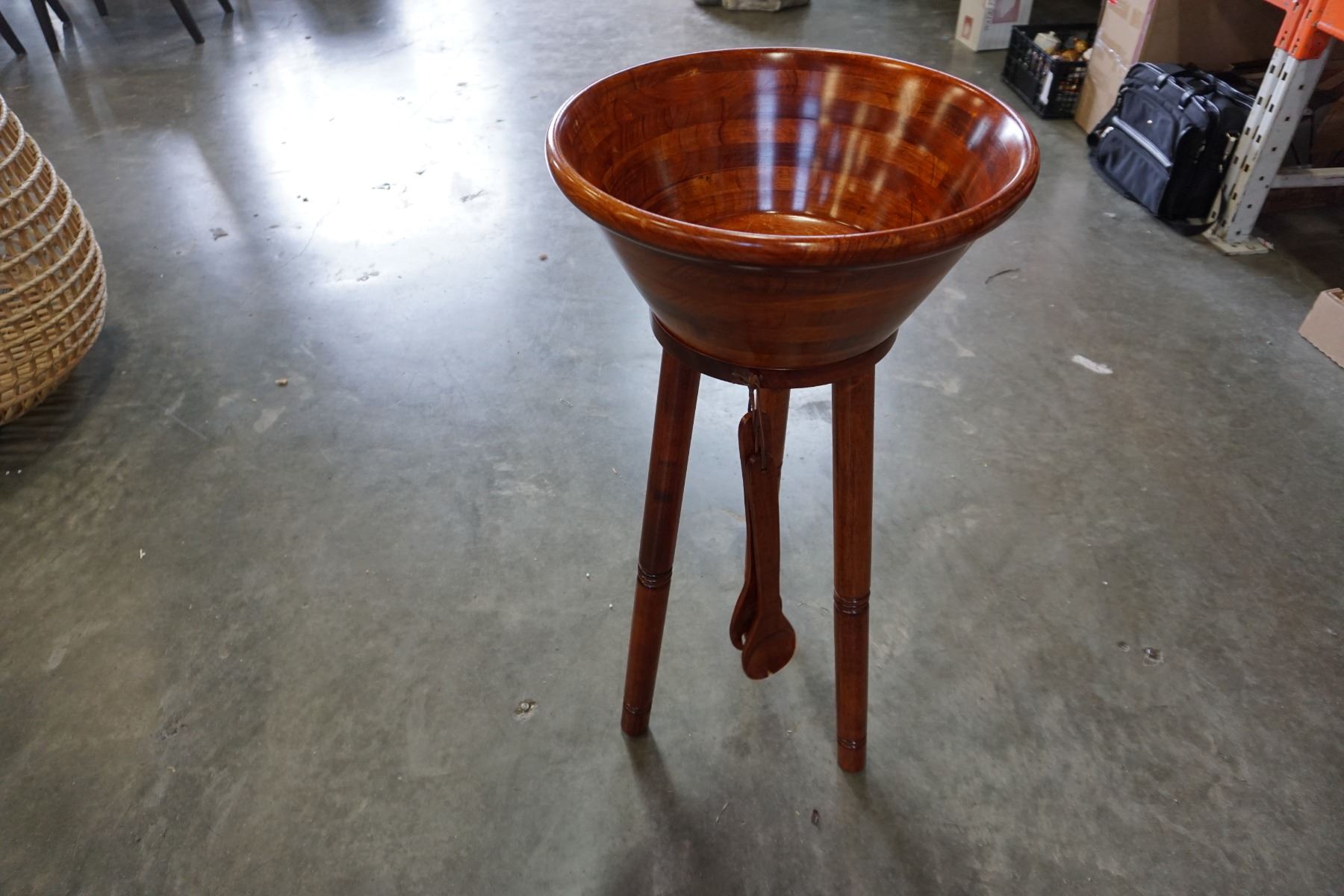 WOOD SALAD BOWL ON STAND W/ UTENSILS