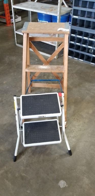 WOODEN AND METAL STEP LADDERS