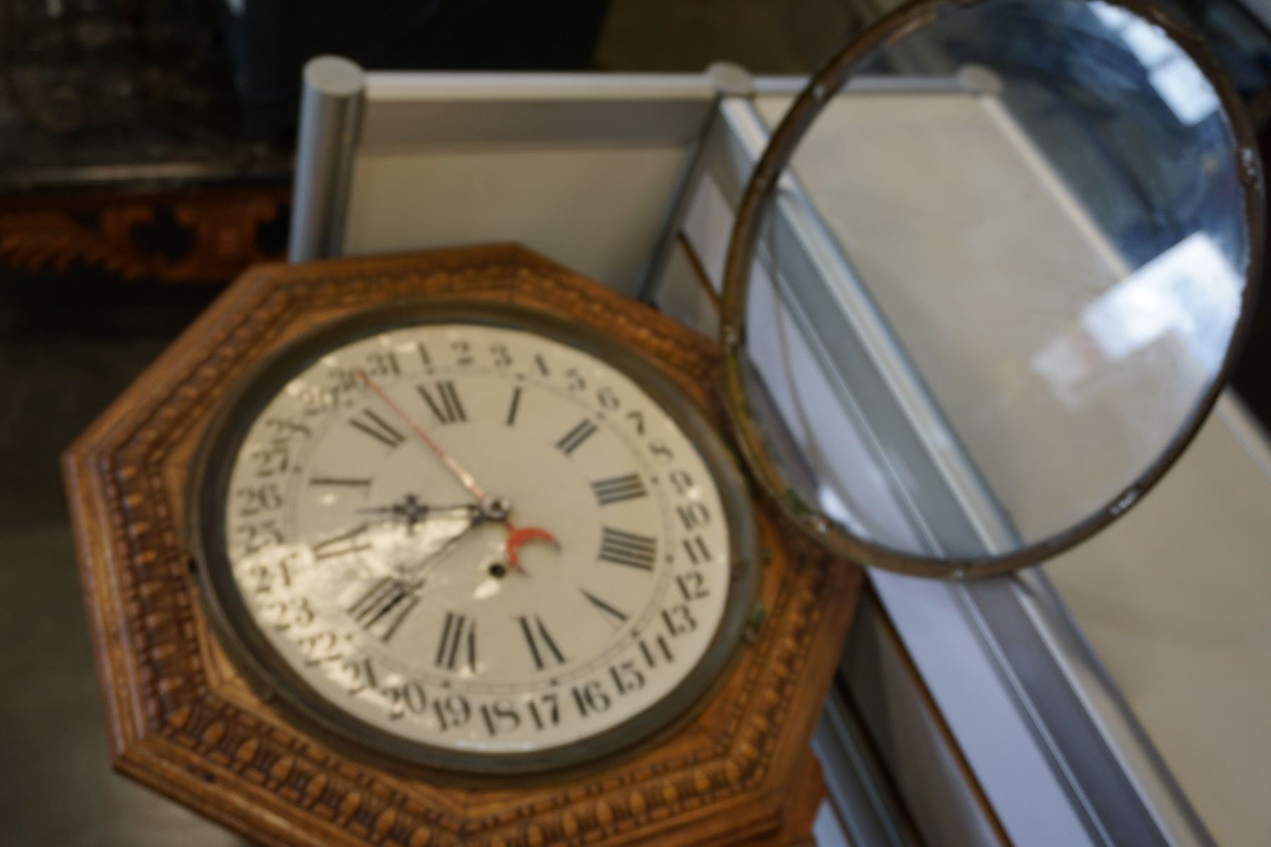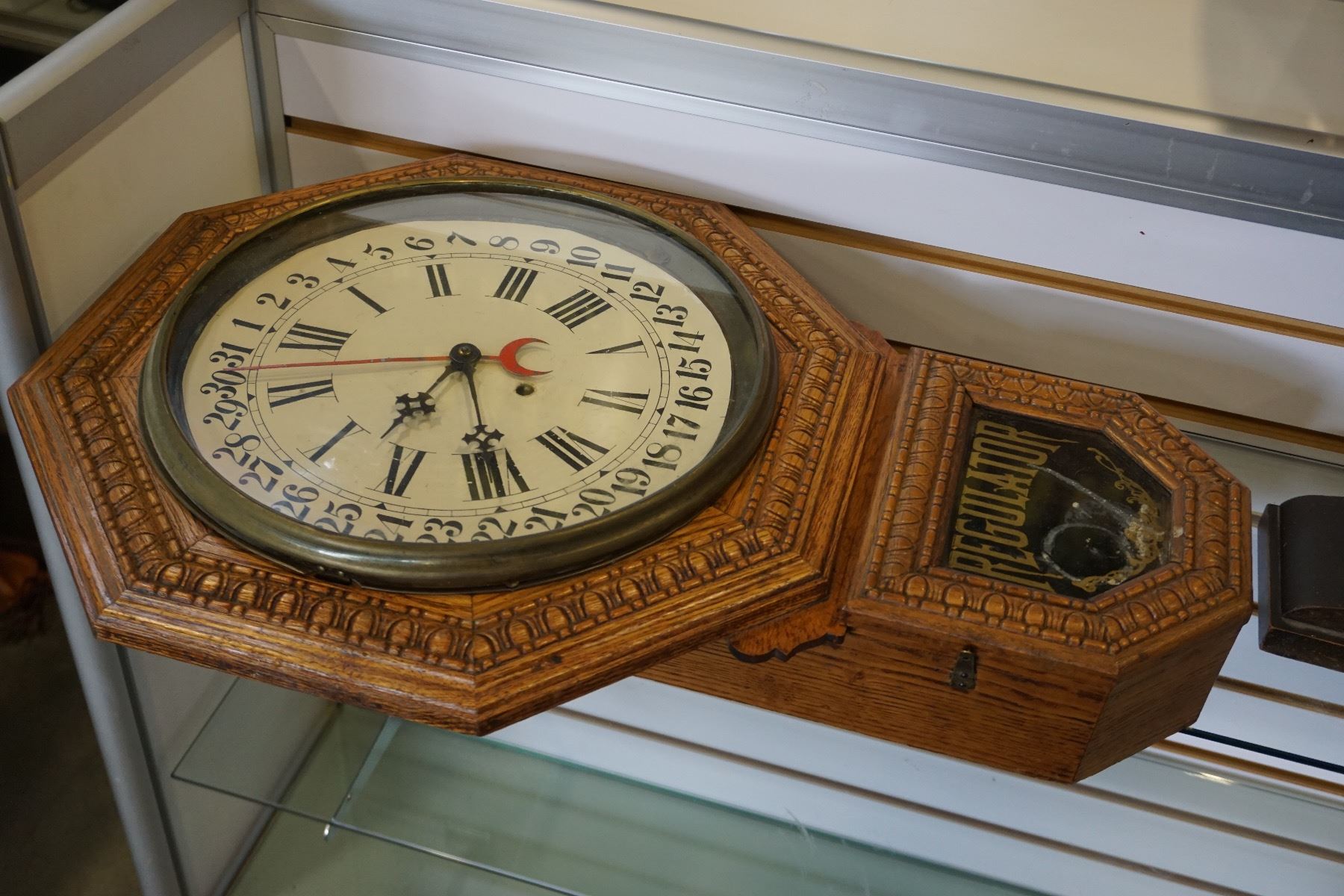 WOODEN CASED REGULATOR CLOCK W/ KEY NO PENDULUM