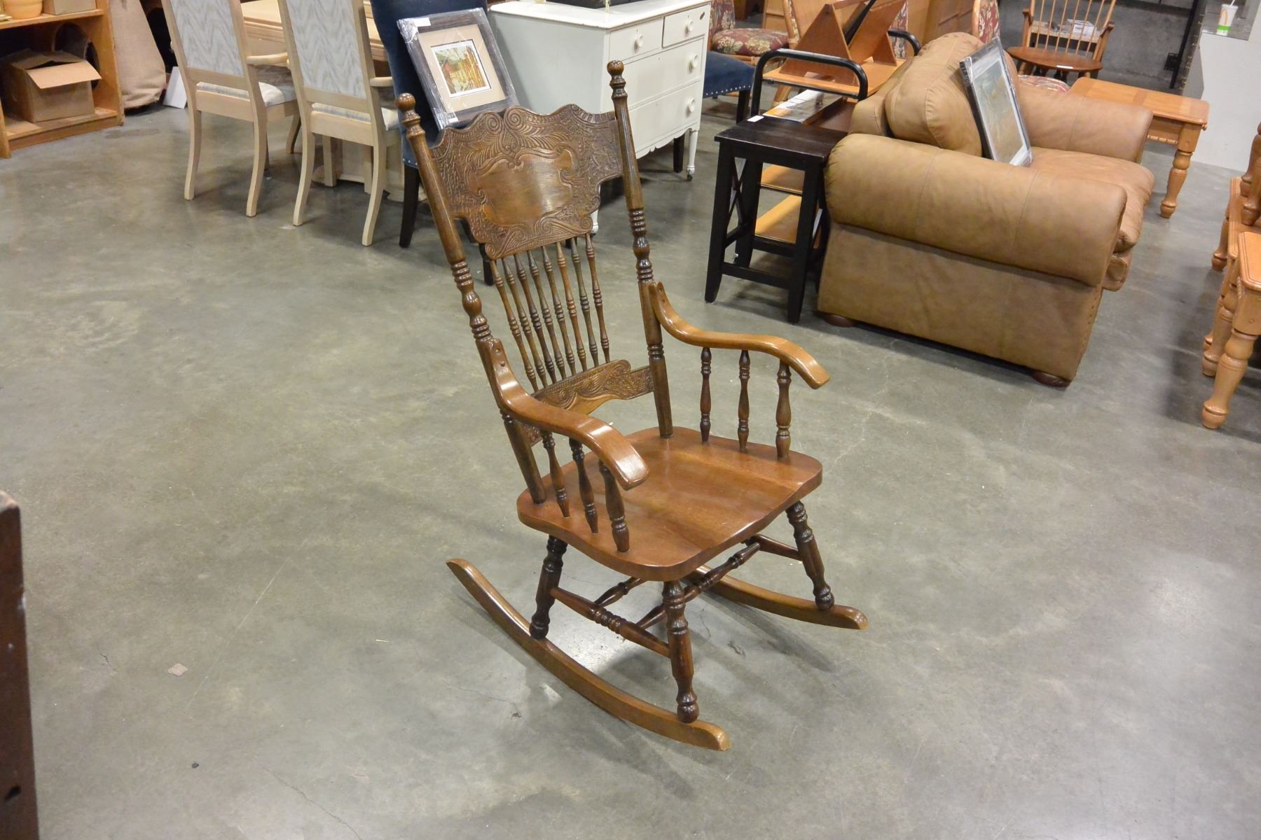 WOODEN DOUBLE PRESSED BACK ROCKING CHAIR